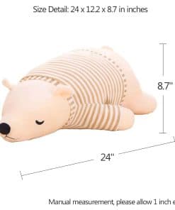 TAMAÑO – Oso polar blanco durmiente de 24 x 12.2 x 8.7 pulgadas | 61 x 31 x 22 centímetros, pesa 1.21 libras / 0.55 kilogramos. Nuestro gran oso de peluche polar es suave, acogedor, cómodo y un compañero perfecto para ayudar a los niños con su hora de dormir. Si tu hijo tiene problemas para ir a la cama, un gran abrazo y caricia de nuestro juguete de oso polar de peluche son todo lo que necesita tu hijo para visitar el país de los sueños. Un gran juguete de peluche para tus hijos y el mejor regalo para los amantes de los osos polares o los amantes de los peluches. MATERIALES – Este peluche oso polar está cosido de forma segura con las telas de poliéster y acrílico de más alta calidad y lleno de relleno de algodón blanco, exclusivamente de materiales nuevos, suave y mullido, se puede lavar, seguro para tus hijos. Todos los peluches son buenos para abrazar, reconfortar y escuchar, y les gusta jugar y hacer travesuras. El mejor regalo para los amantes de los osos polares o los amantes de los peluches, y es una hermosa decoración en el escritorio, dormitorio. JUGUETE DE SEGURIDAD PARA NIÑOS – Cumple y supera las normas de seguridad de juguetes ASTM F963, CPSIA Sección 101, CPSIA Sección 108. Todo está bien cosido y unido en el oso polar. No hay nada en el oso polar (botones, etc.) que pueda ser peligroso para un bebé / niños pequeños. Para proteger al oso polar de preferencia, el oso polar está empaquetado al vacío. Si sientes que no está esponjoso después de abrirlo, no te preocupes, solo agítalo unas cuantas veces para recuperar el tamaño normal después de quitar el paquete. REGALO PERFECTO PARA NIÑOS – Peluche multifuncional, se puede utilizar como juguete, almohada, cojín y para abrazar. Perfecto como regalo para Navidad, el día de San Valentín, cumpleaños, baby shower, Pascua u otras vacaciones para tus seres queridos como bebés, niños pequeños, hijos, hijas, nietos, niños, adultos, etc. Un peluche no solo es un juguete para niños, sino también un compañero de alma para ellos, además es una decoración de hogar muy única. GARANTÍA DE DEVOLUCIÓN DE DINERO SIN PROBLEMAS DE 180 DÍAS – Para asegurarte de que estés completamente satisfecho con tu compra, te ofrecemos una GARANTÍA DE DEVOLUCIÓN DE DINERO SIN PROBLEMAS DE 180 DÍAS, así que no dudes en enviarnos un mensaje si tienes alguna pregunta o problema sobre nuestros productos, te proporcionaremos una respuesta satisfactoria dentro de las 12 horas. A los niños, adolescentes y adultos les encantan estos clásicos y coleccionables apoyos cómodos para acurrucarse. Este regalo asequible y considerado seguramente será apreciado por tus seres queridos.