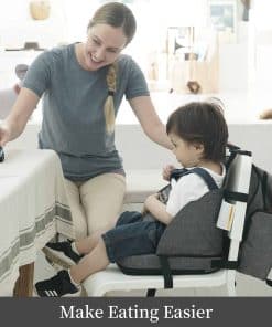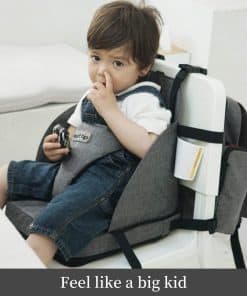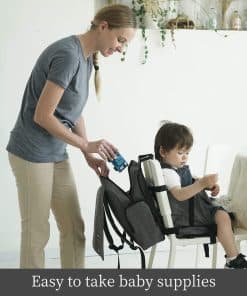 Mochila 2 en 1 y Asiento Elevador para Niños para Silla de Cocina es la solución perfecta para las familias que están en movimiento. Con cinturones en los lados y en la parte superior, asegura que la mochila se mantenga en su lugar en el respaldo del asiento. Los padres pueden sacar lo que necesiten de la mochila sin levantarse del asiento, lo que ahorra tiempo y esfuerzo. Además, es fácil de plegar para guardar. Fabricado con telas TPU resistentes al agua y a las manchas, es fácil de limpiar con un simple paño.