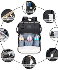 La mochila de pañales ANWTOTU es un accesorio ideal para viajar, con capacidad para todas tus necesidades. Cuenta con 19 bolsillos, incluyendo compartimento principal para toallitas, botellas de agua, biberones, llaves, teléfono móvil, cartera, pañales y ropa. Los 3 bolsillos aislados mantienen la leche caliente, el bolsillo impermeable puede llevar toallas húmedas y el bolsillo para toallitas es conveniente para limpieza. Incluye puerto USB para cargar en la mochila. Diseñada con acolchado grueso y correas ajustables para una máxima comodidad y organización. Perfecta como regalo para mamá, este producto es la mezcla perfecta de funcionalidad y estilo.