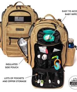 Somos una empresa estadounidense dirigida por estadounidenses. Respaldamos nuestros productos al 100 por ciento. Ofrecemos una garantía limitada contra defectos de material o mano de obra. Si este producto falla debido a un defecto de fabricación, lo reemplazaremos sin complicaciones. Si no está satisfecho por cualquier motivo, contáctenos y lo solucionaremos. No se hacen preguntas. Características clave: 600D poliéster resistente al agua y forro interior de poliéster 210D. Incluye un gran cambiador de pañales. Correas integradas para cochecito. Compartimento para toallitas de acceso fácil. Bolsillo lateral aislado con cremallera. Bolsillo lateral aislado para biberón. Cinta de alta resistencia para accesorios MOLLE. Correa de cintura desmontable. Correa de equipaje conveniente para viajar. Correas para hombros cómodas y acolchadas. Tira para parches (incluye parche de la bandera americana). Compartimento acolchado interior para laptop. Cremalleras duraderas y confiables. Muchos bolsillos de organización interior. ¿Quiere la mejor mochila cambiadora del mercado? ¿Está buscando mejorar su estilo de crianza? Nuestra mochila cambiadora es el producto perfecto para usted. Esta mochila de estilo militar es ideal para papás militares y no militares. Tiene un aspecto resistente y genial mientras cumple su propósito. Incluye todos los elementos esenciales para bebés para facilitarle la vida. Dispensador de toallitas para pañales, correas para cochecito, bolsillos aislados y más. Ya no habrá molestias al cambiar a su bebé. La mochila incluso incluye un cambiador de pañales grande para mayor comodidad. Conviértase en un super papá con nuestra mochila cambiadora de alta calidad que le ahorrará años de molestias.