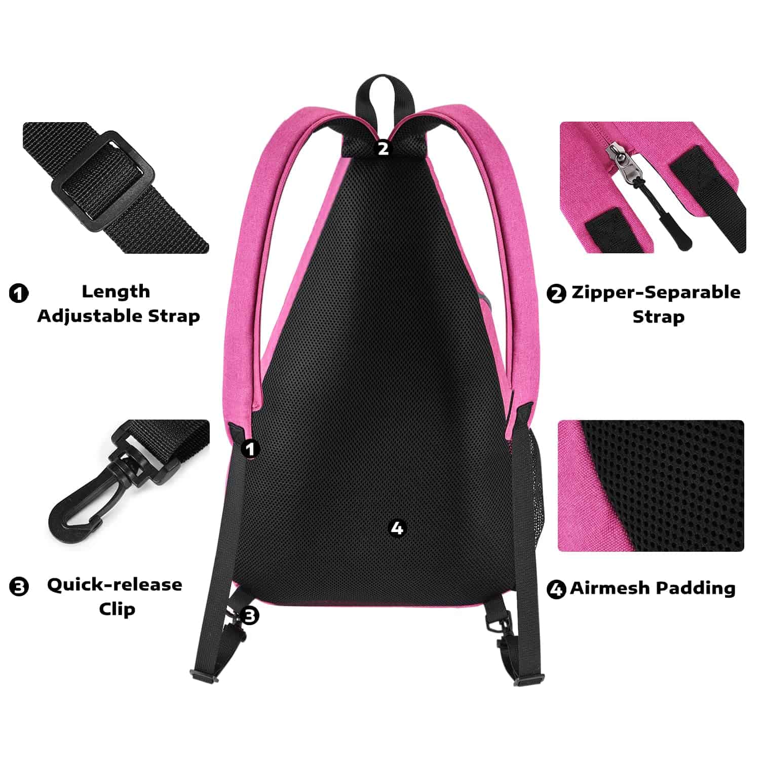 3. Forma de Transporte Ajustable: La correa para el hombro de esta mochila tiene un diseño separable con cremallera. No solo puede ser una mochila cruzada, sino también una mochila convencional. Además, la correa para el hombro es reversible en dirección para adaptarse tanto a zurdos como a diestros.