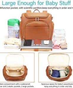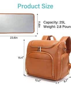 Mochila de Cuero para Pañales con Cambiador – Gran