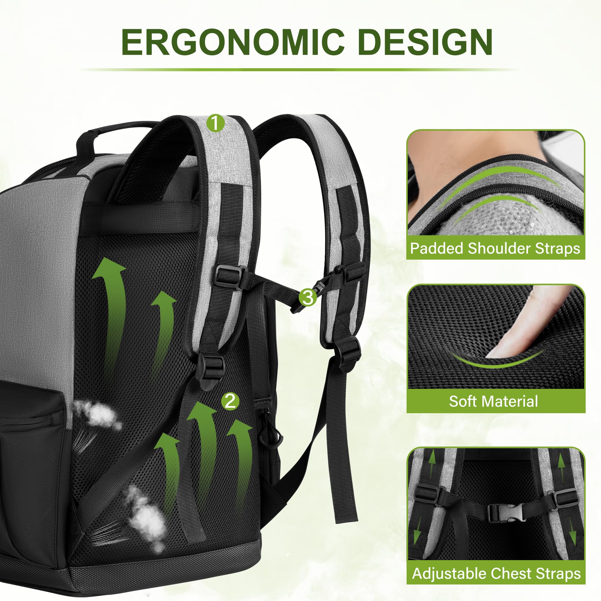 3. Diseño Ergonómico con Correa en el Pecho: Con correas de hombro ergonómicas y una correa en el pecho, esta mochila distribuye el peso de manera uniforme, reduciendo la presión en los hombros. Asegura comodidad durante largos períodos de uso y es ideal para torneos o largas caminatas.