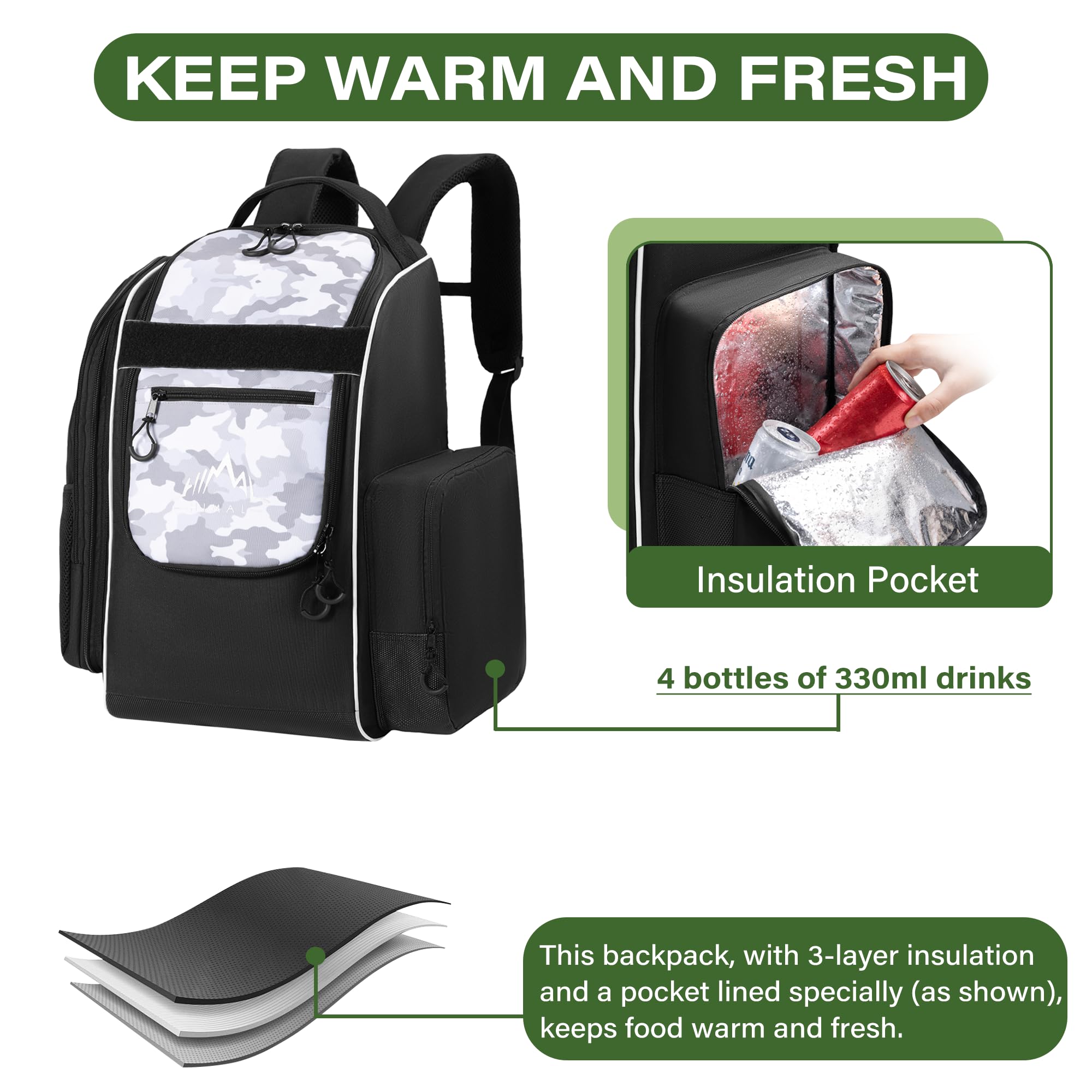 La Mochila de Disco de Golf Himal Outdoors es el compañero perfecto para los entusiastas del disco golf. Con un diseño ergonómico que incluye correas acolchadas y ergonómicas para los hombros, esta mochila distribuye el peso de manera uniforme, reduciendo la carga en los hombros y aumentando la comodidad durante los rounds largos. Además, cuenta con un fondo impermeable que garantiza que tu equipamiento permanezca seco, incluso en el césped mojado. Esta protección adicional mantiene tus discos y artículos esenciales seguros de la humedad, haciéndola perfecta para todas las condiciones climáticas. El bolsillo lateral aislado para enfriador está diseñado para mantener tus bebidas a la temperatura perfecta, ya sea caliente o fría. Mantente refrescado e hidratado durante todo tu round, sin importar el clima, para una experiencia más placentera y cómoda. Los separadores ajustables de velcro ayudan a organizar tus discos, manteniéndolos separados y evitando daños. Disfruta de un acceso fácil a tus discos y de una bolsa sin desorden, haciéndola perfecta para configuraciones rápidas de juego y almacenamiento organizado. Además, el bolsillo lateral expandible brinda espacio adicional para almacenar elementos como refrigerios, discos extras o pertenencias personales. Prepárate para disfrutar al máximo de tus partidas de disco golf con esta increíble mochila.