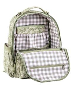 La Mochila Clásica de JuJuBe tiene un diseño elegante e innovador que hace que sea más fácil que nunca mantenerse organizado sobre la marcha. Esta bolsa espaciosa y diseñada de forma intuitiva tiene espacio para todo lo que necesita para su bebé: pañales, meriendas, bebidas, ropa extra y mucho más, así como objetos personales como su billetera, llaves y teléfono. Gracias al compartimento de toallitas húmedas de fácil acceso, compartimento para botellas aislado y bolsillo de acceso rápido para el teléfono, tiene todo lo que necesita al alcance de su mano. El compartimento principal se abre completamente plano como una maleta para facilitar el embalaje, y las correas preformadas ajustables para los hombros, la cubierta para carrito y las correas para cochecito proporcionan comodidad y conveniencia adicionales. La Mochila Clásica es lavable a máquina y cuenta con un material resistente a las manchas, forro interior y herrajes metálicos duraderos, por lo que puede hacer todo lo que se espera de ella.