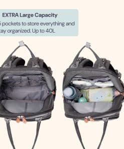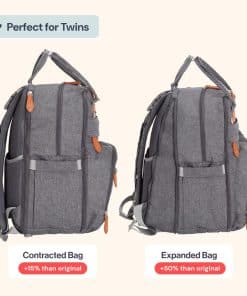 Perfecto para Regalos de Senerallos de Bebé Gemelos! ¡La búsqueda en tu Registro de Bebé termina aquí! La mochila extra grande para pañales se expande de 30 a 40 litros de capacidad, un 50% más de almacenamiento que nuestra mochila de pañales original! Incluye sostenedor de chupetes y un cambiador plegable fácil de limpiar (tamaño: 23»x14.5″), correas para el cochecito – todo lo que los padres en movimiento necesitan!. La mochila XL para pañales es ideal para dos niños – se expande para ofrecer toneladas de espacio para guardar cosas de bebé, además de algunas para mamá y papá! Incluye 2 compartimentos principales, 5 bolsillos aislados (¡Caben Todas las Principales Botellas de Bebé!), un bolsillo para toallitas y un cambiador multifuncional dedicado! Bolsillo para tabletas y laptops de hasta 15.6″. ¡MUCHOS bolsillos, con cremalleras de fácil deslizamiento hacen que esta mochila cambiadora para bebés sea fácilmente accesible con una sola mano!. Durabilidad y Comodidad – Nuestras elegantes mochilas de mano para cambiar pañales están hechas de tejido resistente al desgarro y resistente al agua, cierres fuertes y forro. Las correas curvadas reforzadas, acolchadas y el panel trasero acolchado distribuirán la carga de manera uniforme en tus hombros y espalda para llevarla durante mucho tiempo. Conveniente y Considerado – Funda para equipaje, asa superior fácil de agarrar y clips convenientes para el cochecito – usa esta mochila para pañales como una mochila de viaje esencial, un bolso de mano o sujétala a tu cochecito. ¡BabbleRoo significa Servicio al Cliente! ¡Nuestras bolsas para cambiar pañales vienen con Servicio al Cliente por Correo Electrónico las 24 horas, asistencia al cliente excepcional y una Garantía de 180 Días! ¡Contáctanos si tienes algún problema o necesitas ayuda!