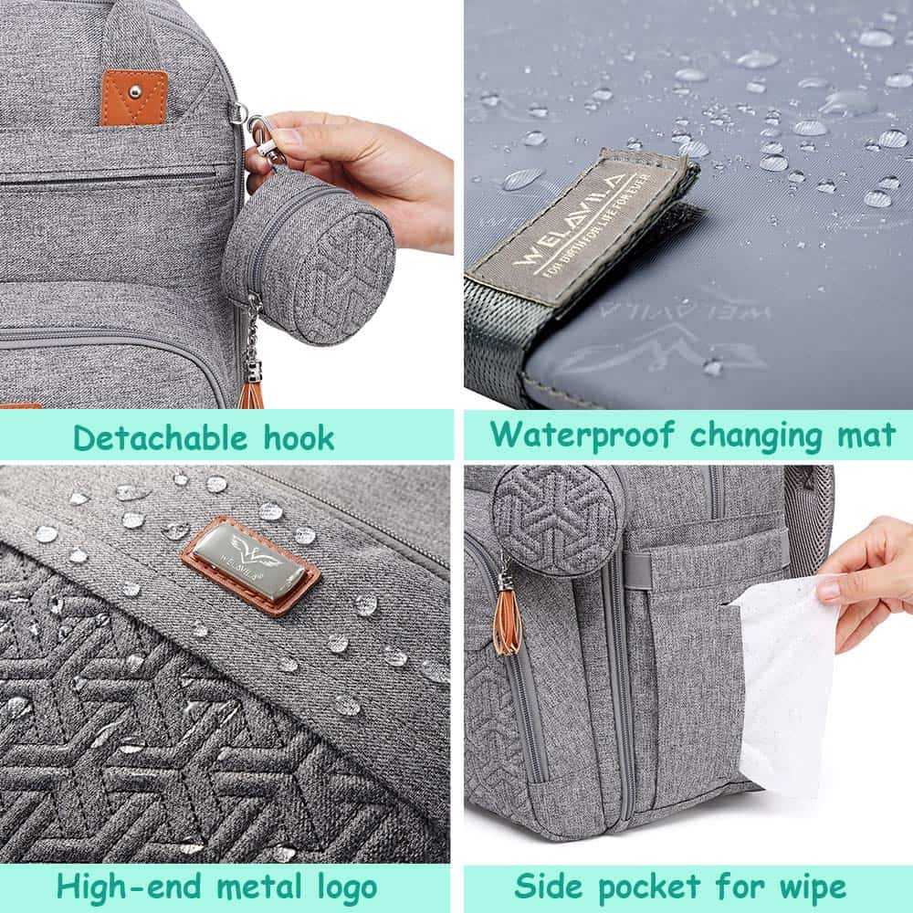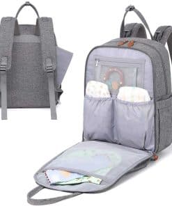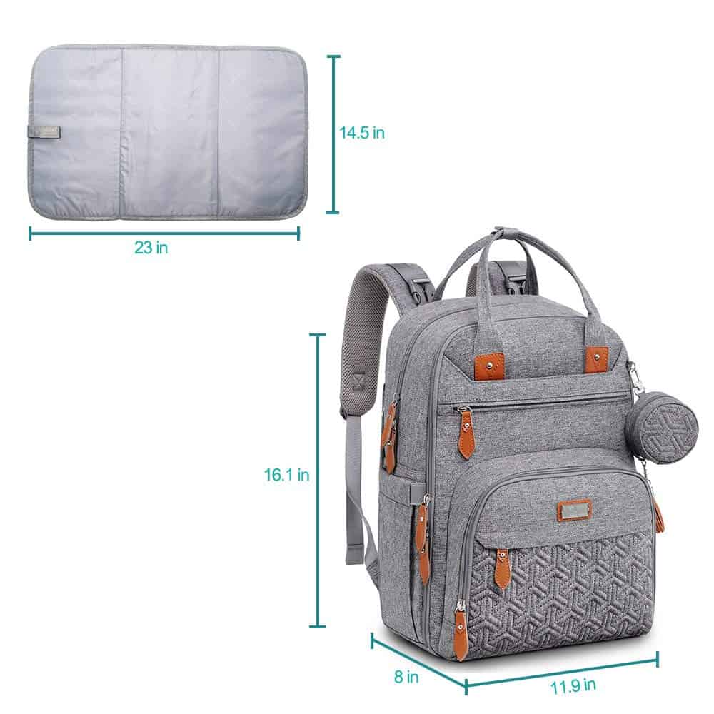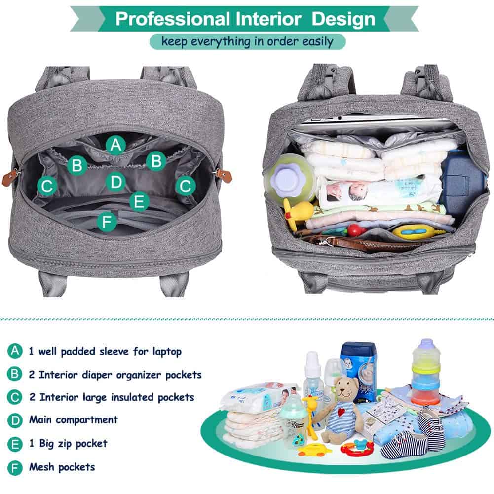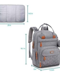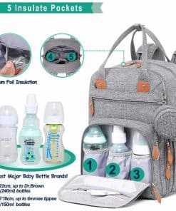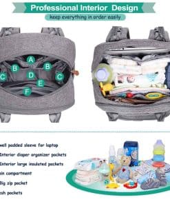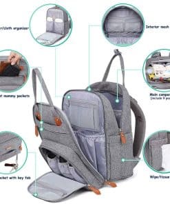 Mantén todo organizado mientras estás en movimiento con esta mochila de pañales para bebés. Con 18 bolsillos en total, incluyendo 5 bolsillos aislados multifuncionales, organizador de pañales con cremallera, varios organizadores de bolsillos de malla, bolsillos delanteros profundos, llavero y funda acolchada para tabletas de hasta 15 pulgadas.