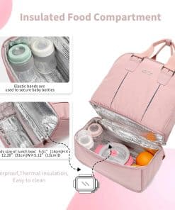 Esta mochila de pañales compacta pero potente está diseñada para proporcionar una solución de almacenamiento más higiénica manteniendo la comida y los suministros separados. Es perfecta para las mamás que prefieren una alternativa ligera a las voluminosas bolsas de pañales. La tela aislada e impermeable del compartimento de comida garantiza una limpieza fácil y también lo hace adecuado para usar como bolsa de almuerzo.