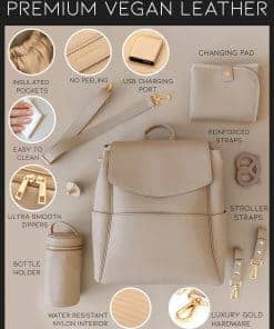 Mochila de Pañales de Cuero MIA + SOPHIA -Beige Olivia