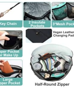 14 Bolsillos de Almacenamiento Separados–Compartimento principal, 7 bolsillos exteriores y 7 bolsillos interiores. Mucho espacio y bolsillos, puedes organizar fácilmente el pañal, la ropa del bebé, ropa húmeda y seca, toalla, sacaleches, auriculares, monedas y dinero.
