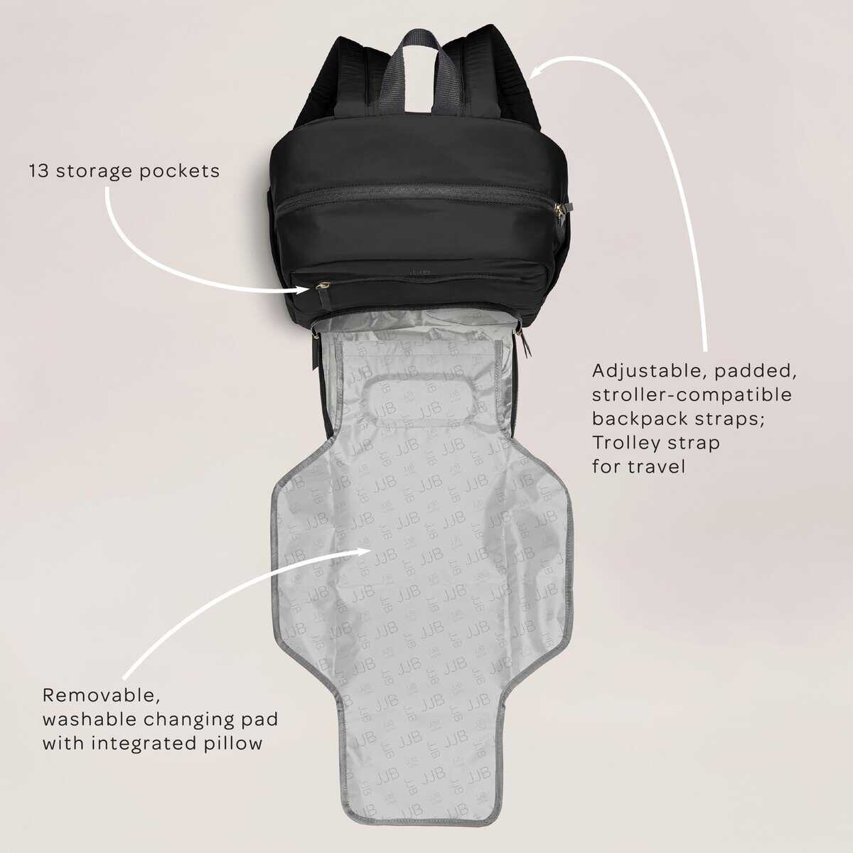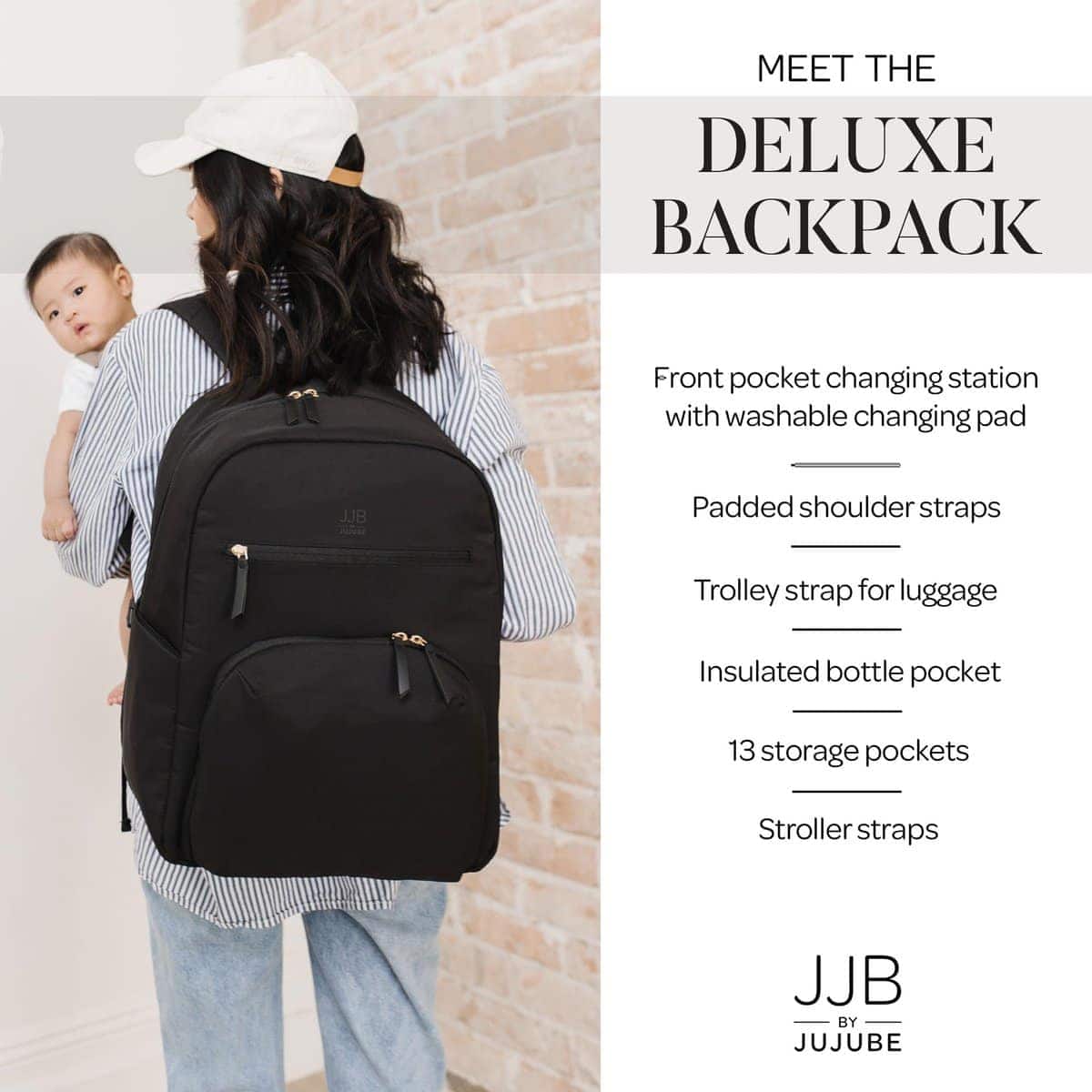 Mochila de pañales Deluxe JuJuBe con cambiador portátil,