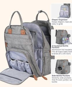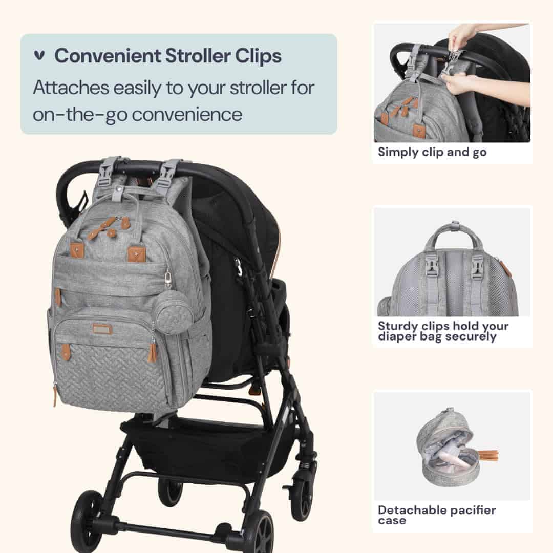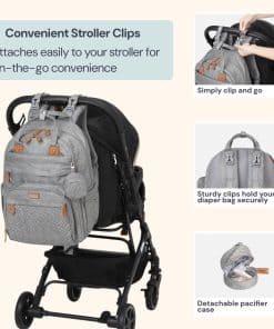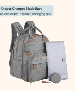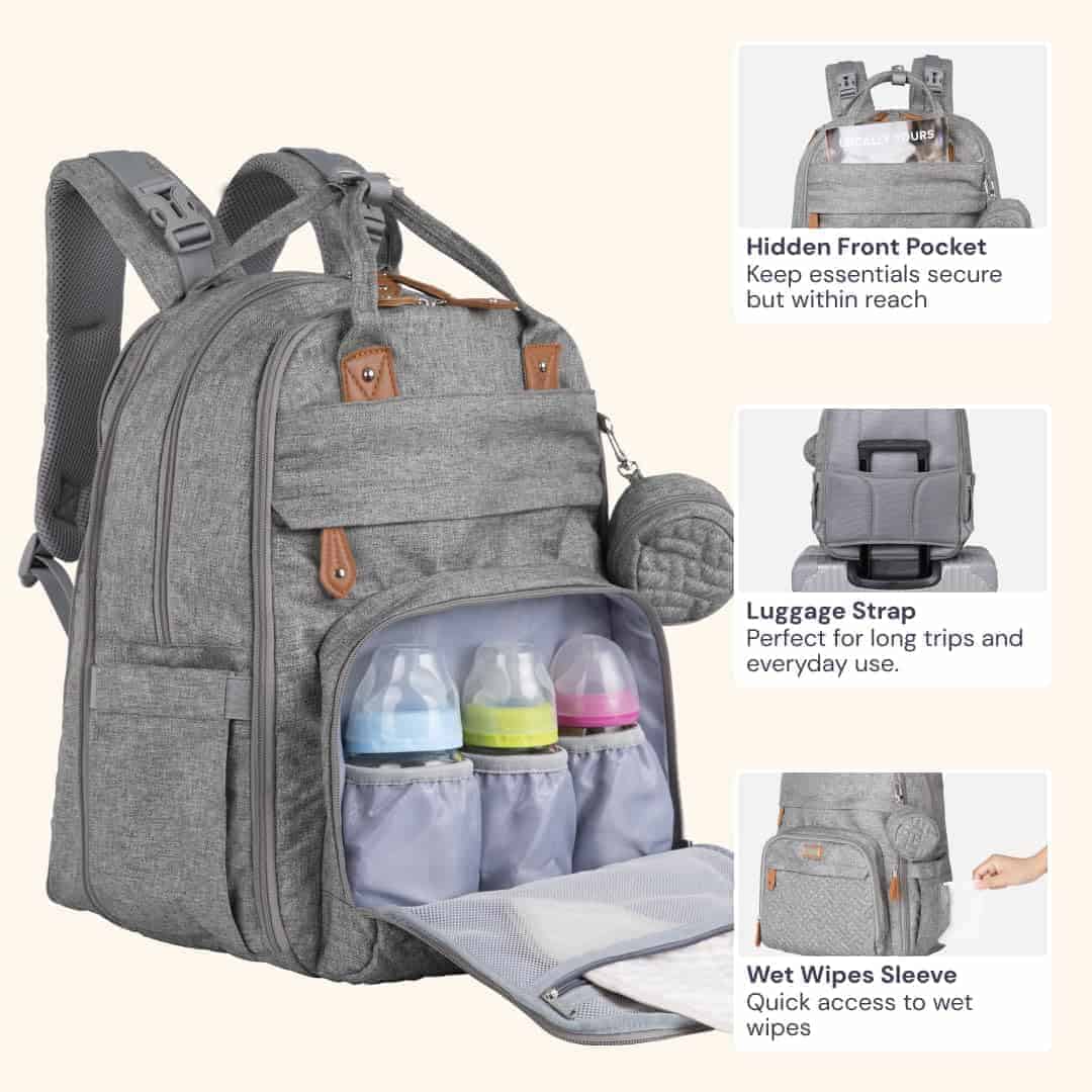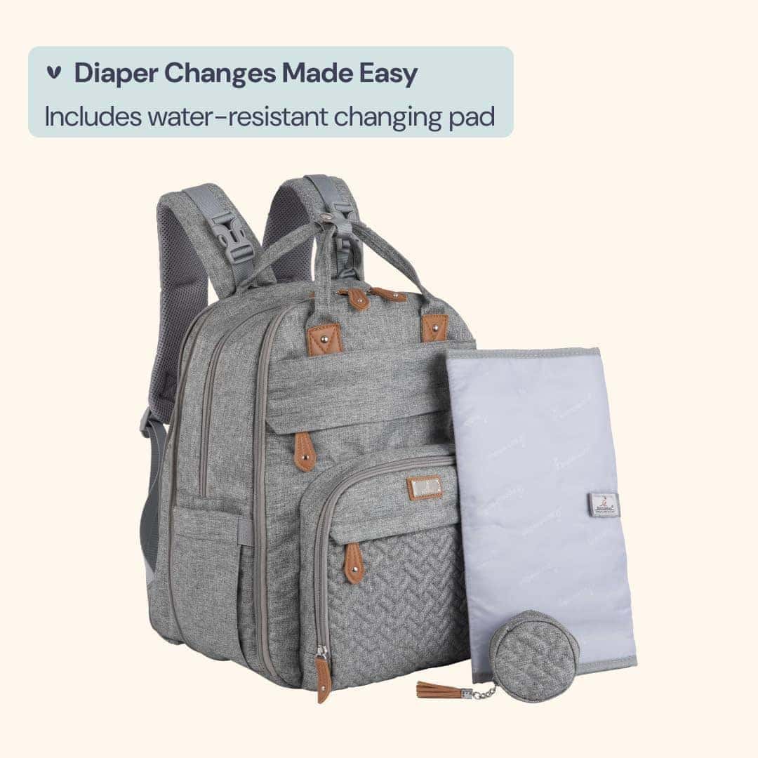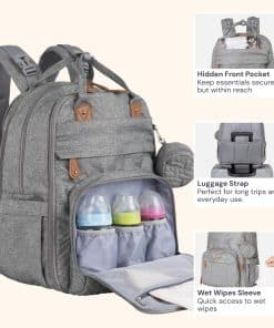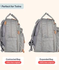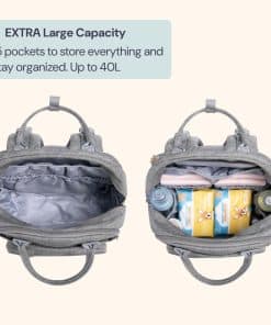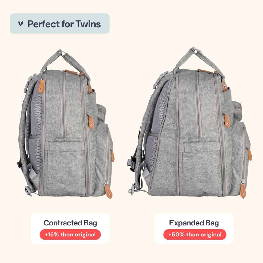 Mochila de Pañales Extra Grande BabbleRoo, Bolso de Bebé Expandible con Hasta un 50% Más de Capacidad – Bolso de Bebé con Artículos de Viaje Esenciales, Cambiador, Correas para el Cochecito y Estuche para Chupetes – Unisex, Gris Claro