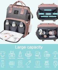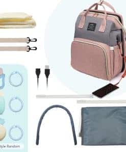1. Mochila de pañales con estación de cambio El bolso de pañales multifuncional 3 en 1 tiene una gran capacidad para guardar todas las necesidades diarias del bebé, es un buen asistente cuando sales de viaje con tu bebé. Los bolsillos multifuncionales son suficientes para organizar todos los artículos de tu bebé de manera ordenada. Un regalo ideal para padres y recién nacidos.