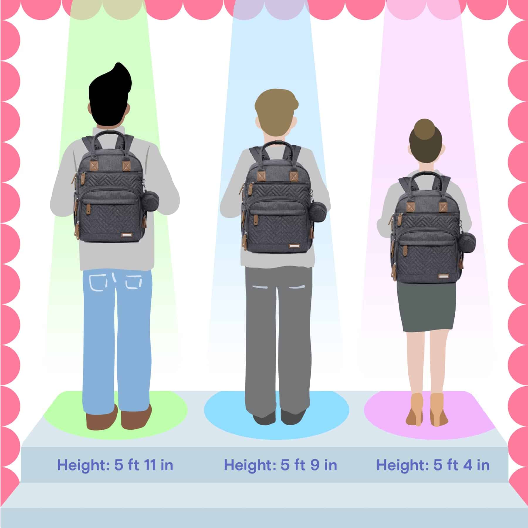 Esta mochila de pañales neutral en cuanto al género y con estilo moderno es ideal tanto para hombres como para mujeres. Se ajusta con gran comodidad en tu espalda, además de ser un regalo increíble para el registro de bebés, una bolsa de fin de semana funcional y una mochila para portátil.