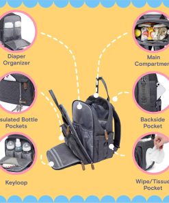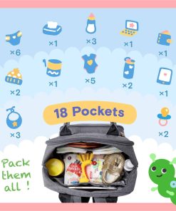 Mochila de pañales con gran capacidad para niños y niñas que es práctica y cargada de bolsillos y estilo. Cuenta con un amplio compartimento principal de apertura amplia para facilitar el empaque y el acceso. Además, 18 bolsillos funcionales mantienen organizados los artículos esenciales del bebé y tus pertenencias. Uno de los bolsillos laterales adopta un diseño de doble uso, las toallitas se pueden sacar fácilmente de un agujero en la capa exterior. Cuando no necesites colocar las toallitas, puedes usar la capa interior para evitar que las cosas se caigan.