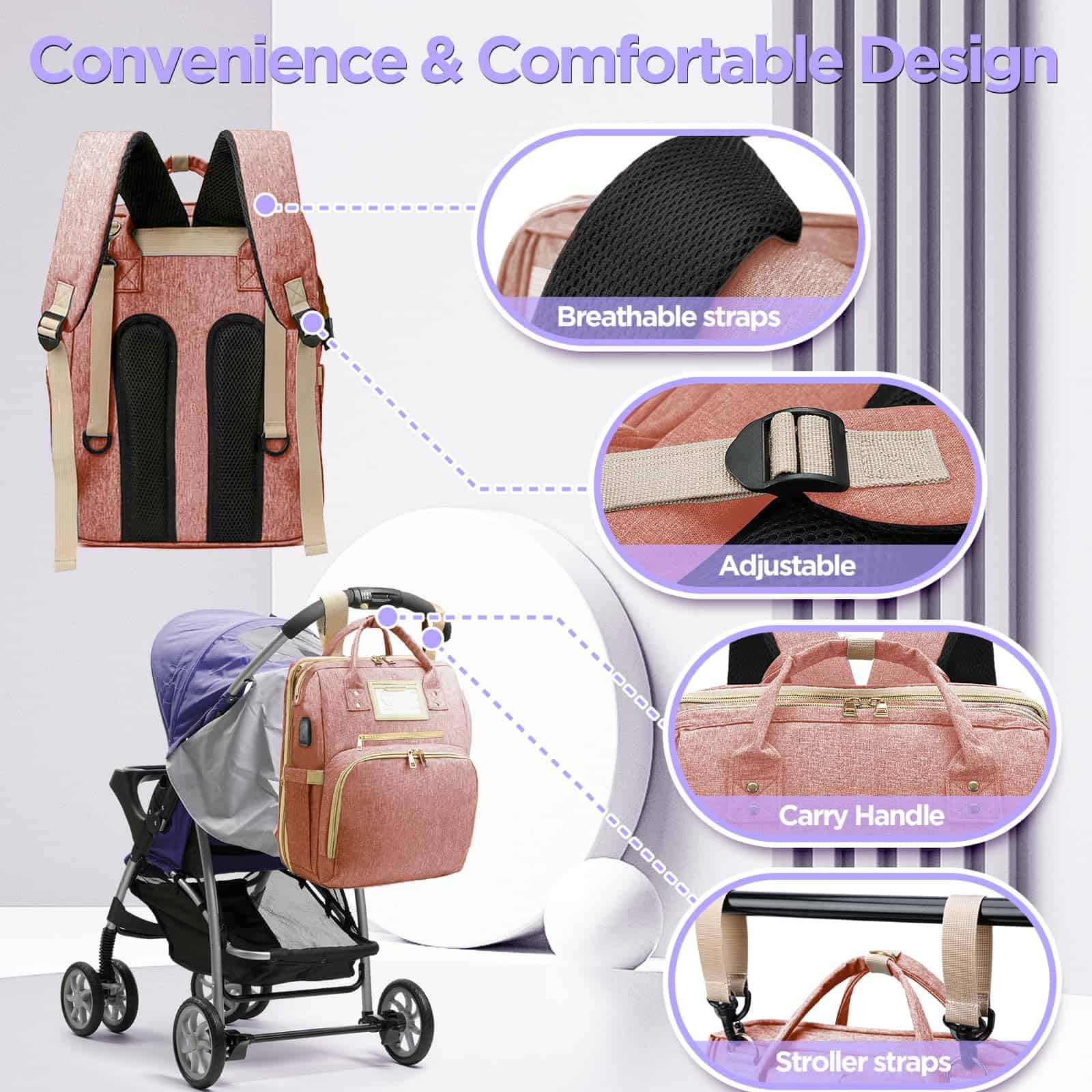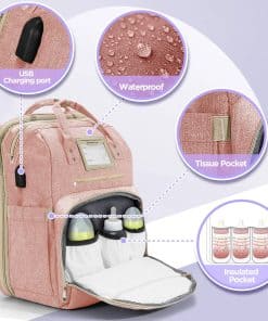 Mochila de pañales con cremalleras sedosas, correas fáciles de llevar, fácil de limpiar y de gran capacidad. ¡Más características amigables, como tela para sombra, correa más ancha, puerto USB y más! ¡Tamaño perfecto con 2 compartimentos principales y 12 bolsillos útiles, incluidos 3 bolsillos aislados actualizados! Es de alta calidad, a prueba de agua, sin preocuparse por mojarse en días lluviosos. El respaldo ergonómico y las correas acolchadas gruesas lo hacen cómodo de llevar durante mucho tiempo. ¡Regalo perfecto para Baby Shower, recién nacidos, padres embarazados! ¡Imprescindibles para padres/mamá/papá!