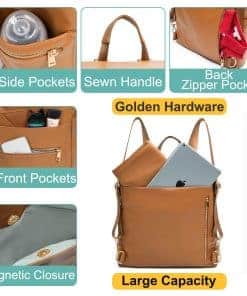 Material: Exterior–Cuero Vegano Suave y Duradero, Interior–Nylon 100% Impermeable.