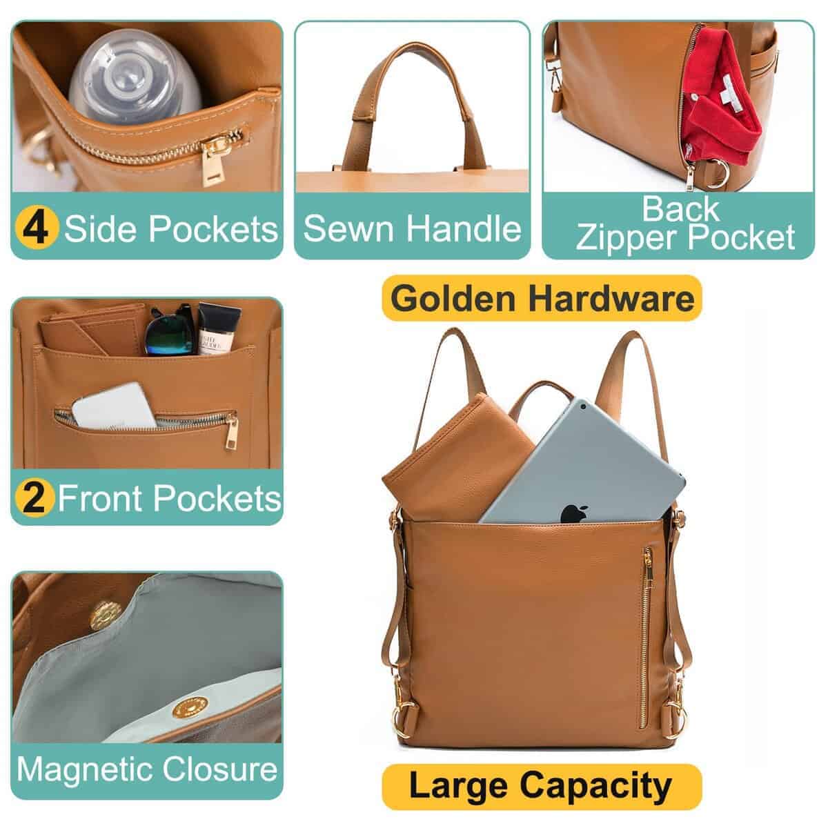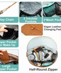 14 Bolsillos de Almacenamiento Separados–Compartimento principal, 7 bolsillos exteriores y 7 bolsillos interiores. Suficiente espacio y bolsillos, puedes organizar fácilmente los pañales, ropa de bebé, ropa húmeda y seca, toalla, sacaleches, auriculares, monedas, dinero.