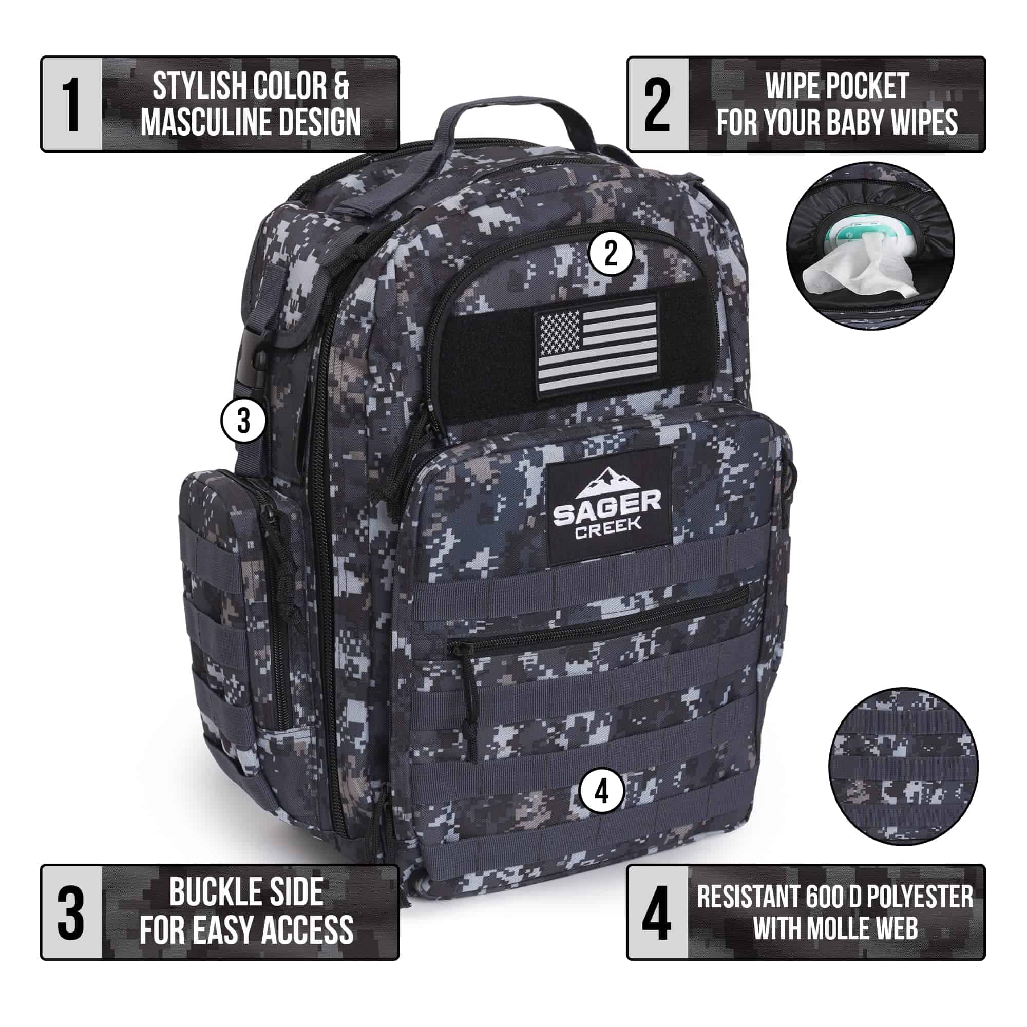 3. ¿POR QUÉ COMPRAR UNA MOCHILA DE PAÑALES QUE SOLO SE PUEDE USAR PARA PAÑALES: Tu hombre usará con orgullo esta mochila táctica todo terreno para mucho más y durante mucho tiempo después de que tu bebé haya superado los pañales. Deportes, aventura, computadora portátil, trabajo. Conviértelo en un papá genial con la última mochila que necesitará.