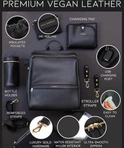 Mochila de piel para pañales MIA + SOPHIA -Negro Sophia