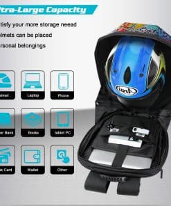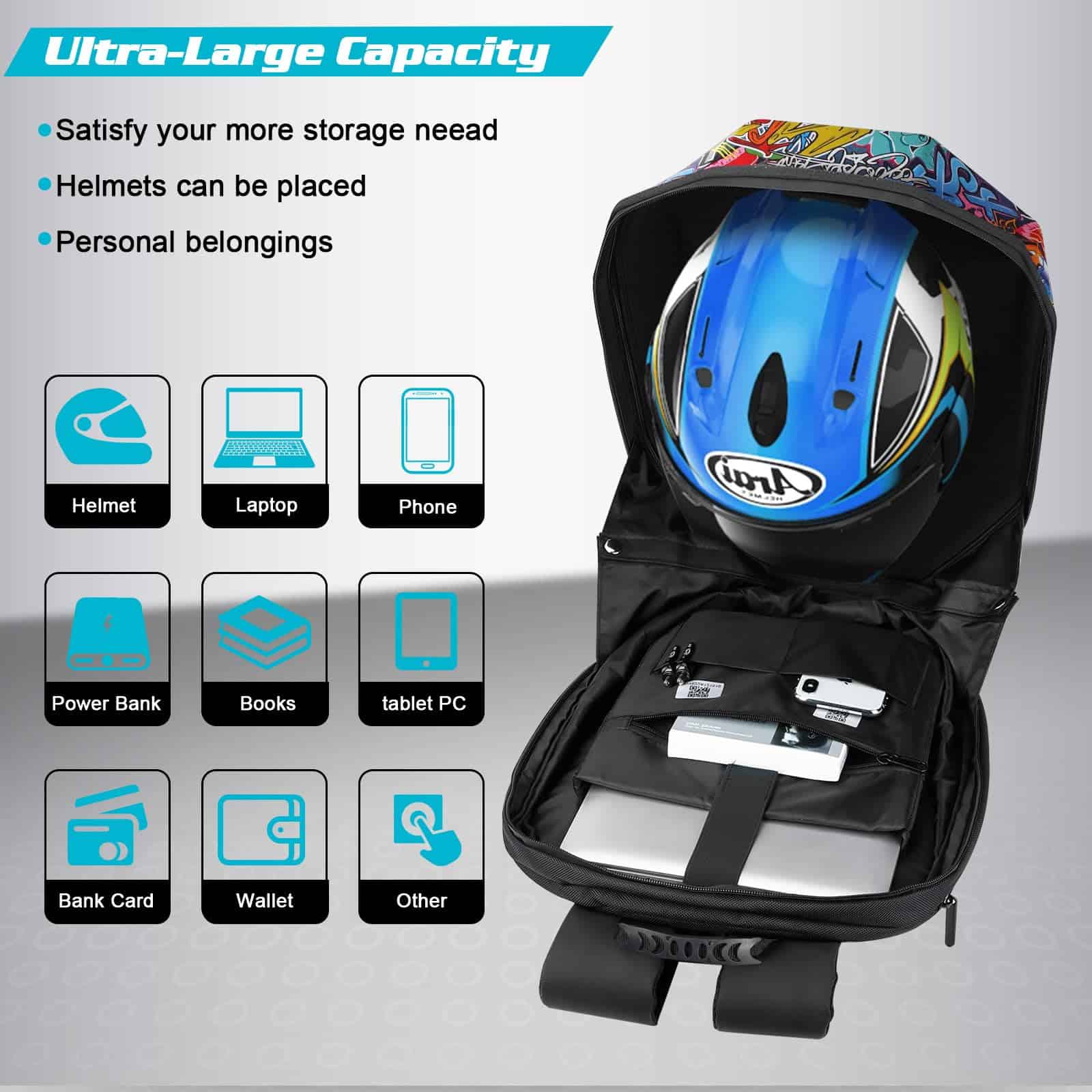 4. Suficiente espacio de almacenamiento: cabe fácilmente una laptop de 15.6 pulgadas, casco de bicicleta/motocicleta, ropa ligera, etc. Con varios espacios de almacenamiento independientes, los objetos personales pueden guardarse fácilmente, como carteras, llaves, iPad, teléfonos móviles.