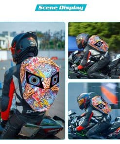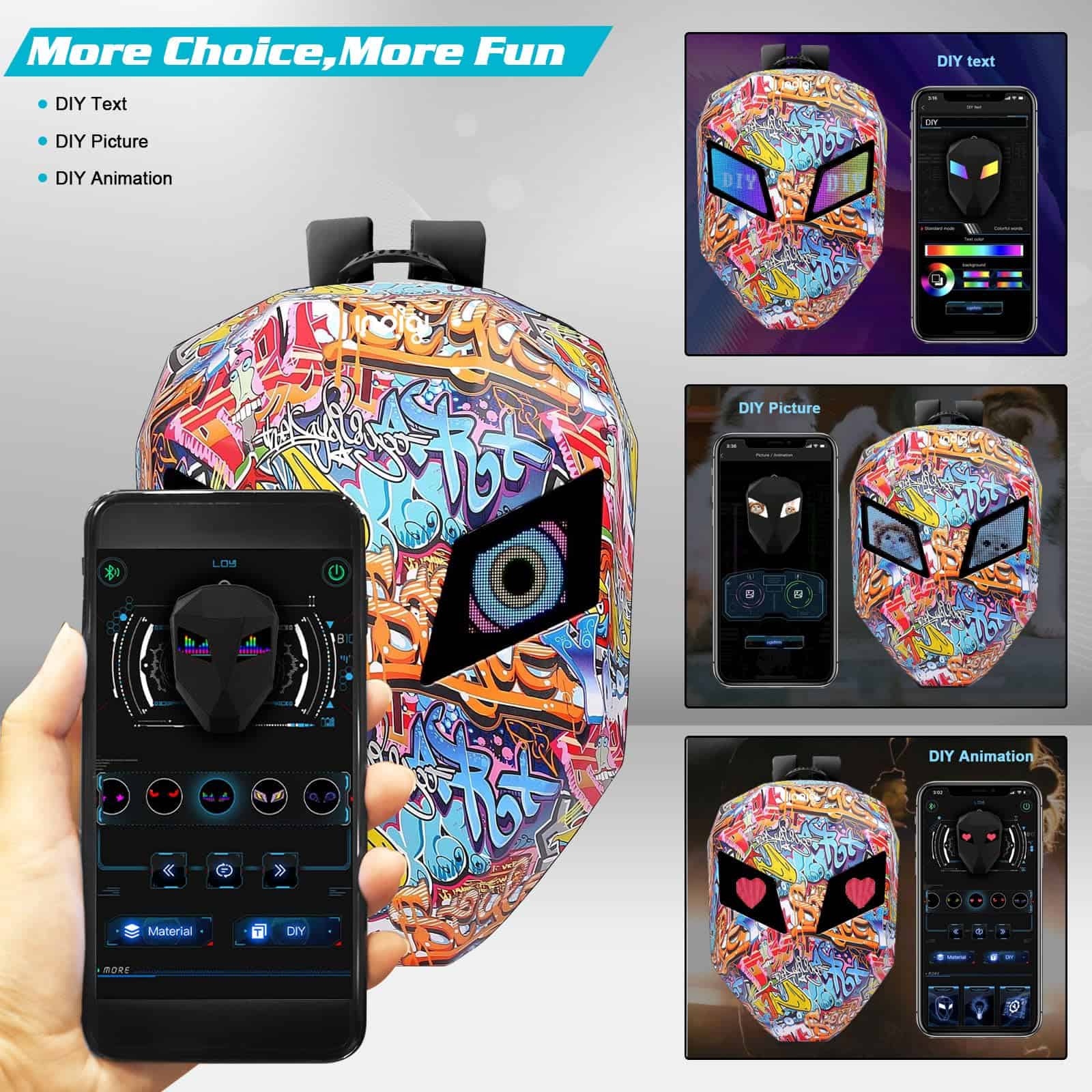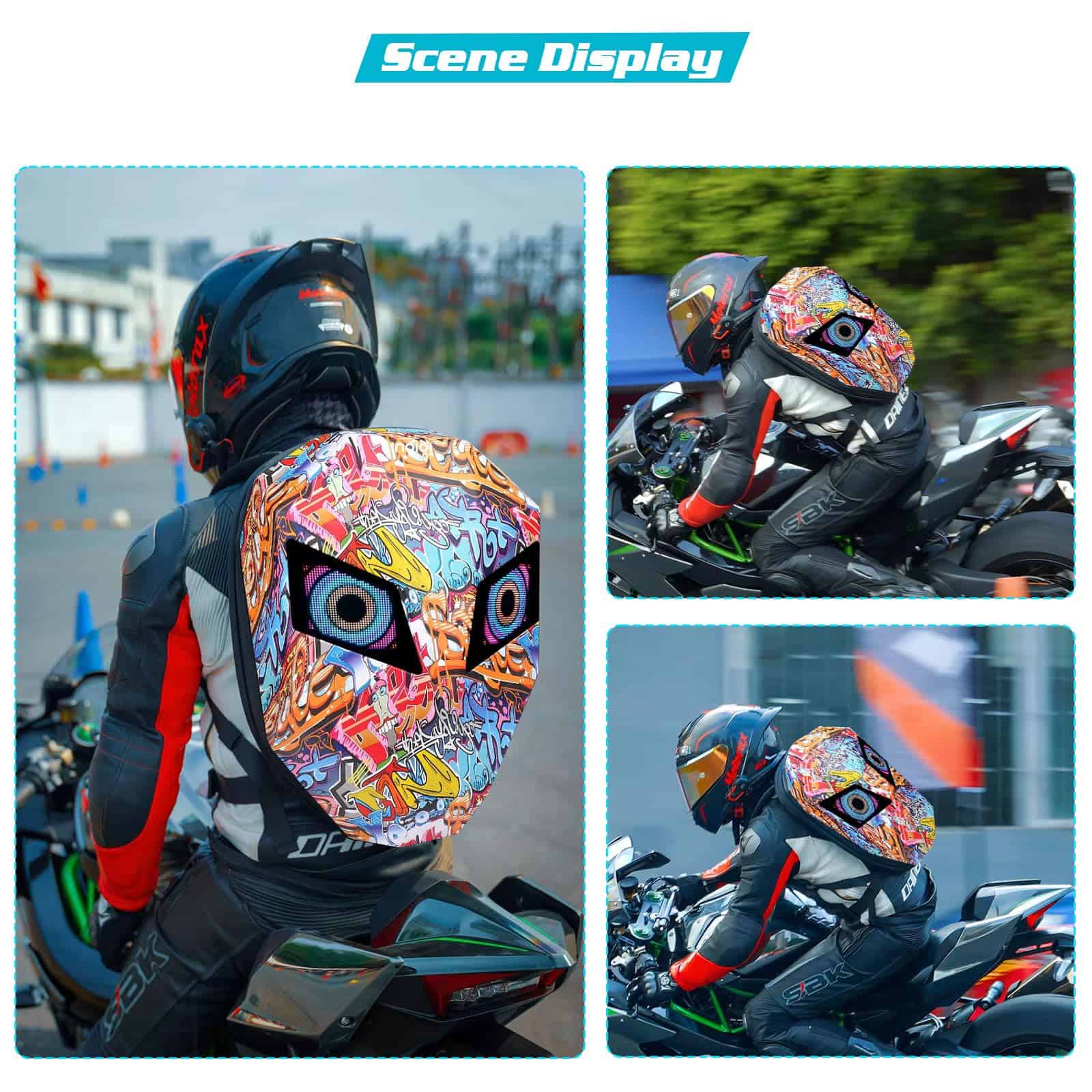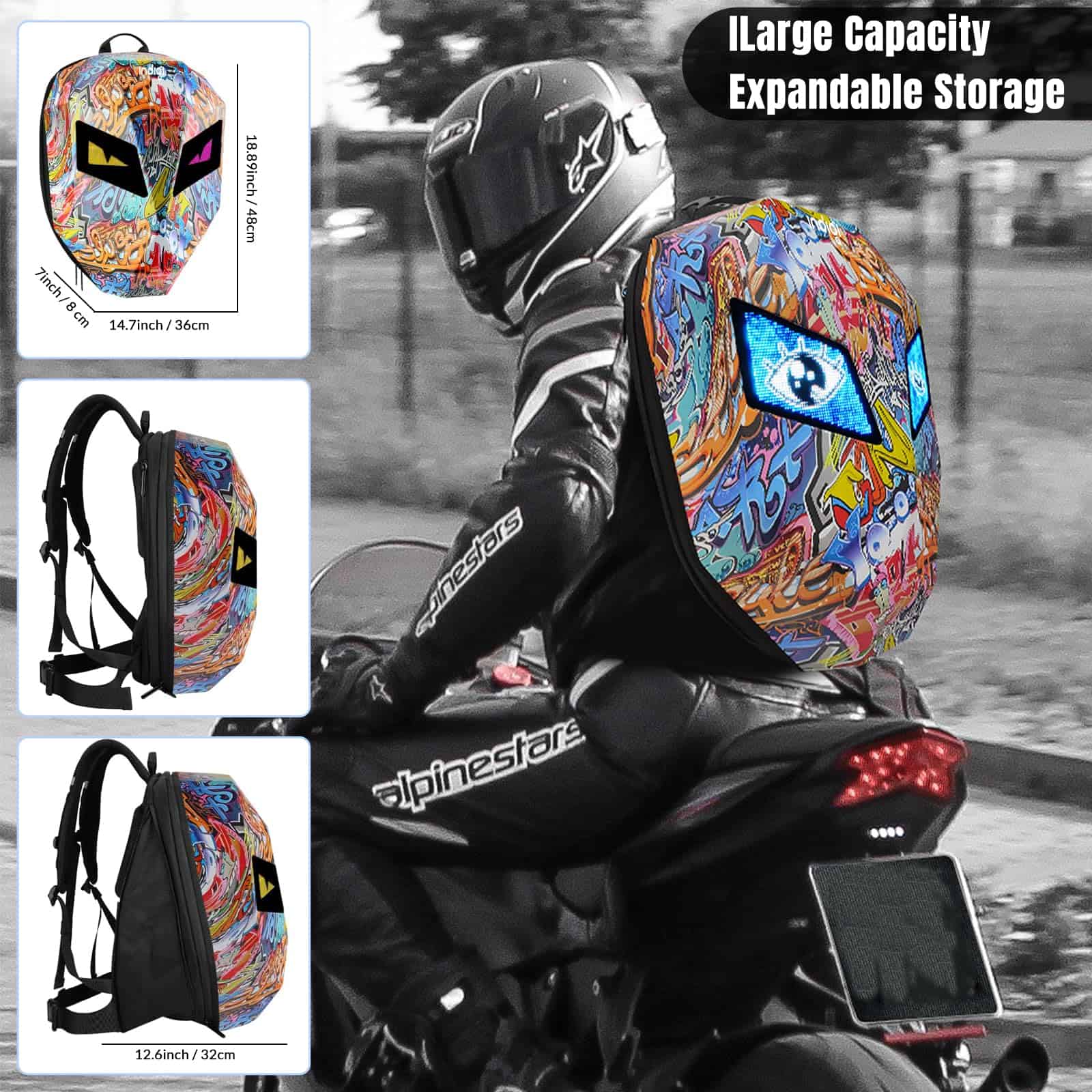 Mantén tus pertenencias seguras y organizadas con esta mochila de viaje para motocicleta con puerto USB expandible. Con capacidad para una laptop de 15.6 pulgadas, casco de bicicleta o motocicleta, ropa ligera y otros objetos personales, esta mochila es perfecta para viajes diarios, senderismo o cualquier actividad al aire libre. La característica más destacada de esta mochila es su contenido LED programable, que te permite mostrar imágenes, palabras o GIF. Además, las correas de hombro ajustables y las hebillas de cintura te permiten personalizar el ajuste según tus necesidades. El diseño ergonómico y el soporte lumbar garantizan comodidad durante todo el día, mientras que la ventilación y el material transpirable evitan la pegajosidad cuando sudas. Fácil de usar, simplemente escanea el código para descargar la aplicación y conecta tu dispositivo para empezar a usarla. Disfruta de un estilo único con esta mochila de viaje con un diseño moderno y funcional.