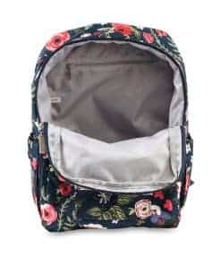 La Mochila JuJuBe MiniBe es elegante, inteligente, funcional y perfecta para pequeños paseos por la ciudad. La amplia apertura doble con cremallera proporciona acceso a todas tus cosas, y los fuelles aseguran que nada se caiga. ¡Empaca tus cosas y prepárate para tu próxima mini aventura!. El bolsillo delantero con cierre magnético es lo suficientemente grande como para contener teléfonos inteligentes, carteras, llaves y otros artículos personales. El bolsillo principal con cremallera es lo suficientemente grande para guardar libros, refrigerios e incluso un par de prendas extra para cuando estés en movimiento. Dentro del bolsillo principal con cremallera hay un bolsillo más pequeño que puede contener una tarjeta de identificación y otros artículos pequeños. El exterior está detallado con herrajes de metal y correas ajustables acolchadas con tela texturizada en la parte inferior para evitar que las correas se deslicen de tus hombros. Para tu comodidad, los productos JuJuBe son lavables a máquina y se pueden dejar secar al aire.