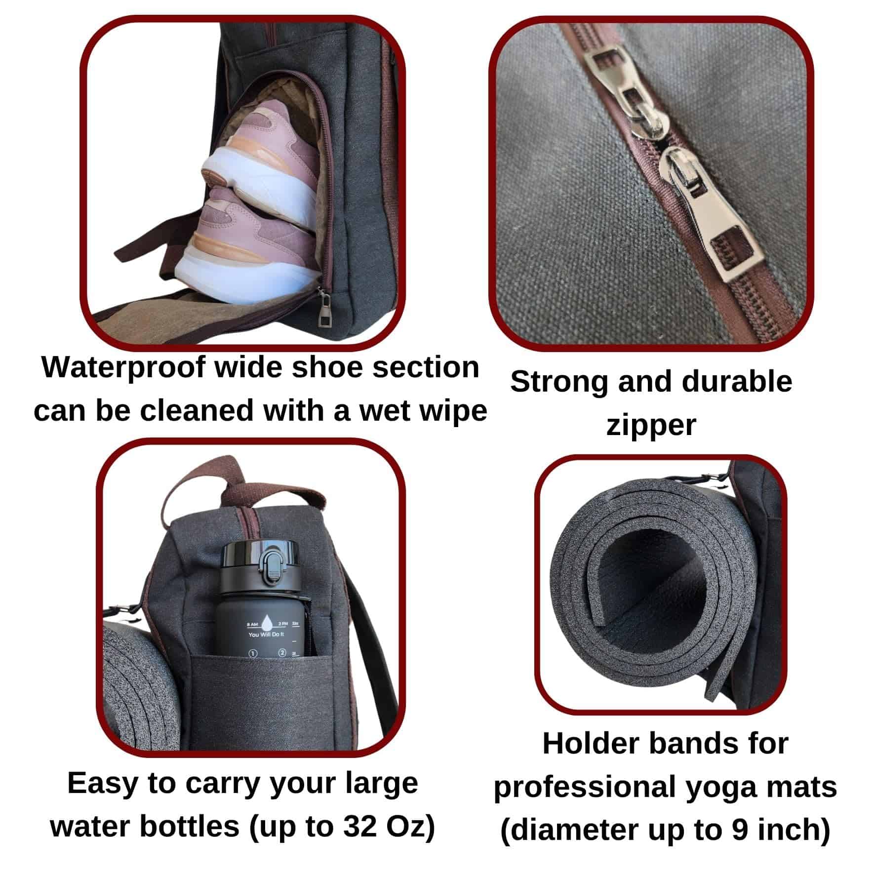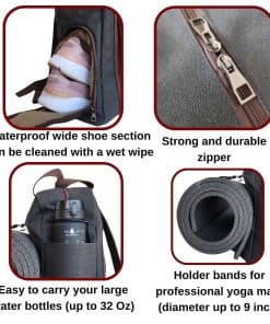 La mochila de yoga NATI LINE es perfecta para llevar todo lo que necesitas para tus actividades diarias. Es ideal para la oficina, practicar yoga, viajar o ir al gimnasio. Cuenta con una sección amplia a prueba de agua para zapatos que se puede limpiar fácilmente con una toallita húmeda. Además, tiene un bolsillo para llevar tu botella de agua de hasta 32 Oz, un bolsillo frontal para objetos pequeños y un soporte para el tapete de yoga que evita que se hunda. La cremallera es resistente y duradera, y cuenta con un compartimento a prueba de agua para guardar la ropa mojada después de practicar ejercicio. ¡Lleva contigo todo lo que necesites de forma organizada y segura con esta increíble mochila de yoga!