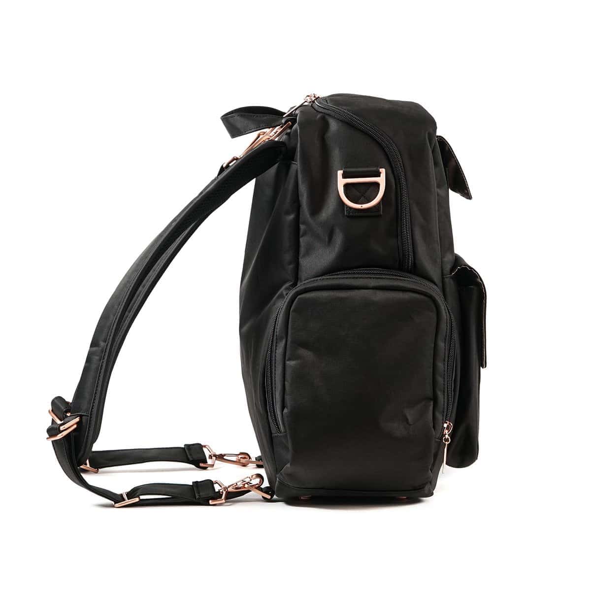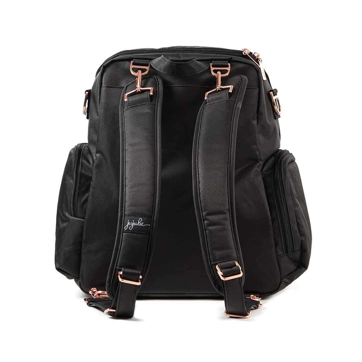 El JuJuBe Be Nurtured es la última adición a nuestra línea de bolsas para extractores de leche. ¡Tienes muchos roles, por lo que necesitas una bolsa que haga lo mismo! El tamaño es justo: más pequeño que nuestro Be Pumped pero más grande que nuestro Be Supplied. Esta bolsa guarda discretamente tu extractor en el bolsillo exterior con cremallera ¡y hasta puedes mantenerlo en la bolsa mientras extraes leche! Un montón de bolsillos mantendrá organizados tus accesorios para extraer leche y artículos diarios. Y si no extraes leche, no te preocupes, ¡porque esta bolsa híbrida es un multiusos como tú! Puede funcionar como bolsa para pañales, bolsa de mano o tu bolsa favorita para llevar a todas partes. Además, se puede llevar de cuatro formas diferentes: como mochila convertible, como bolsa de mensajero, por el asa de agarre o colgada de tu cochecito. La Be Nurtured te apoyará en todas tus necesidades de crianza. Ahora, si tan solo pudiera cambiar un pañal. El estilo Knight Rose es un clásico negro, pero no te dejes engañar pensando que es básico. La lujosa tela tiene un brillo sutil que le da un aspecto elegante y sofisticado. Incluso las cremalleras tienen destellos de color oro rosa. Todos los herrajes, incluyendo la placa frontal y los tiradores de cremallera, tienen un acabado de oro rosa. Para tu comodidad, los productos JuJuBe son lavables a máquina y se pueden dejar secar al aire. Todos los artículos JuJuBe vienen con una garantía limitada de por vida contra defectos de fabricación cuando se compran en un distribuidor autorizado de JuJuBe. Fundada en 2005, JuJuBe es una empresa del sur de California que utiliza la ciencia, el estilo y la actitud para crear bolsas para pañales, bolsos y otros accesorios de moda. JuJuBe asimiló la tecnología más avanzada posible para crear una línea de productos elegante e inteligente que es incomparable en la industria.