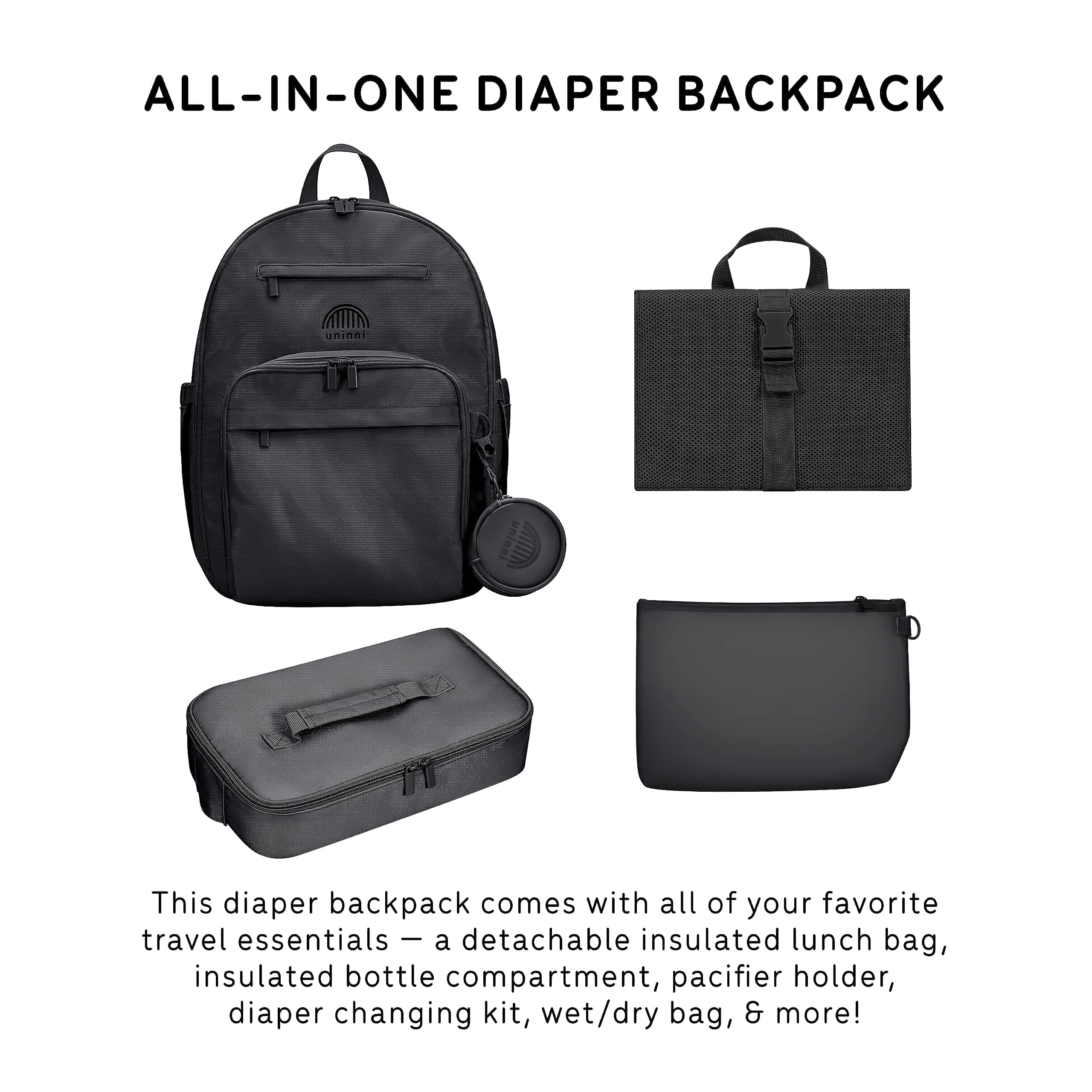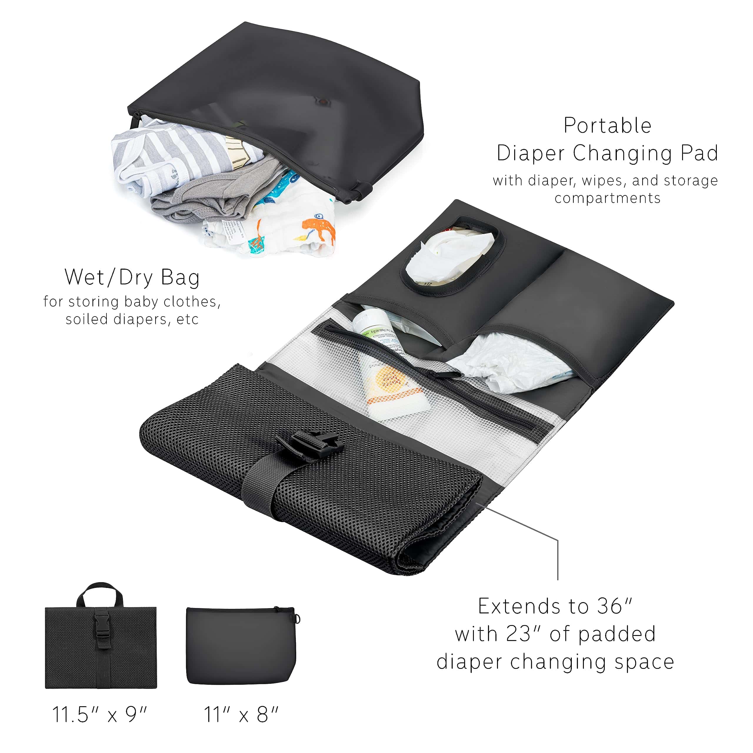 4. Cambiador de pa�ales y bolsa de almacenamiento húmedo/seco: Mantente organizado con el cambiador de pa�ales enrollable incluido y una bolsa duradera impermeable húmeda/seca para ropa de bebé adicional o artículos desordenados ideal para padres ocupados.