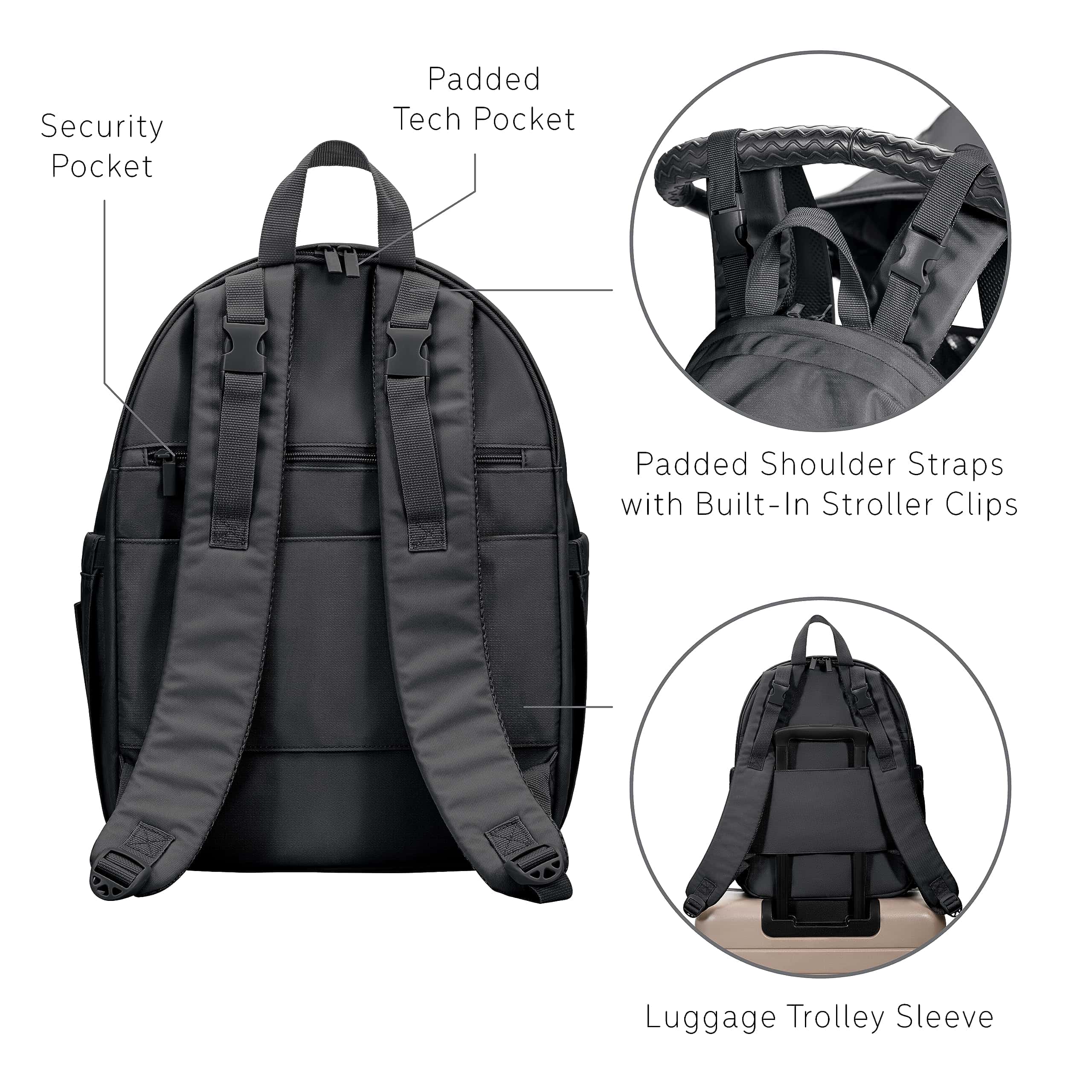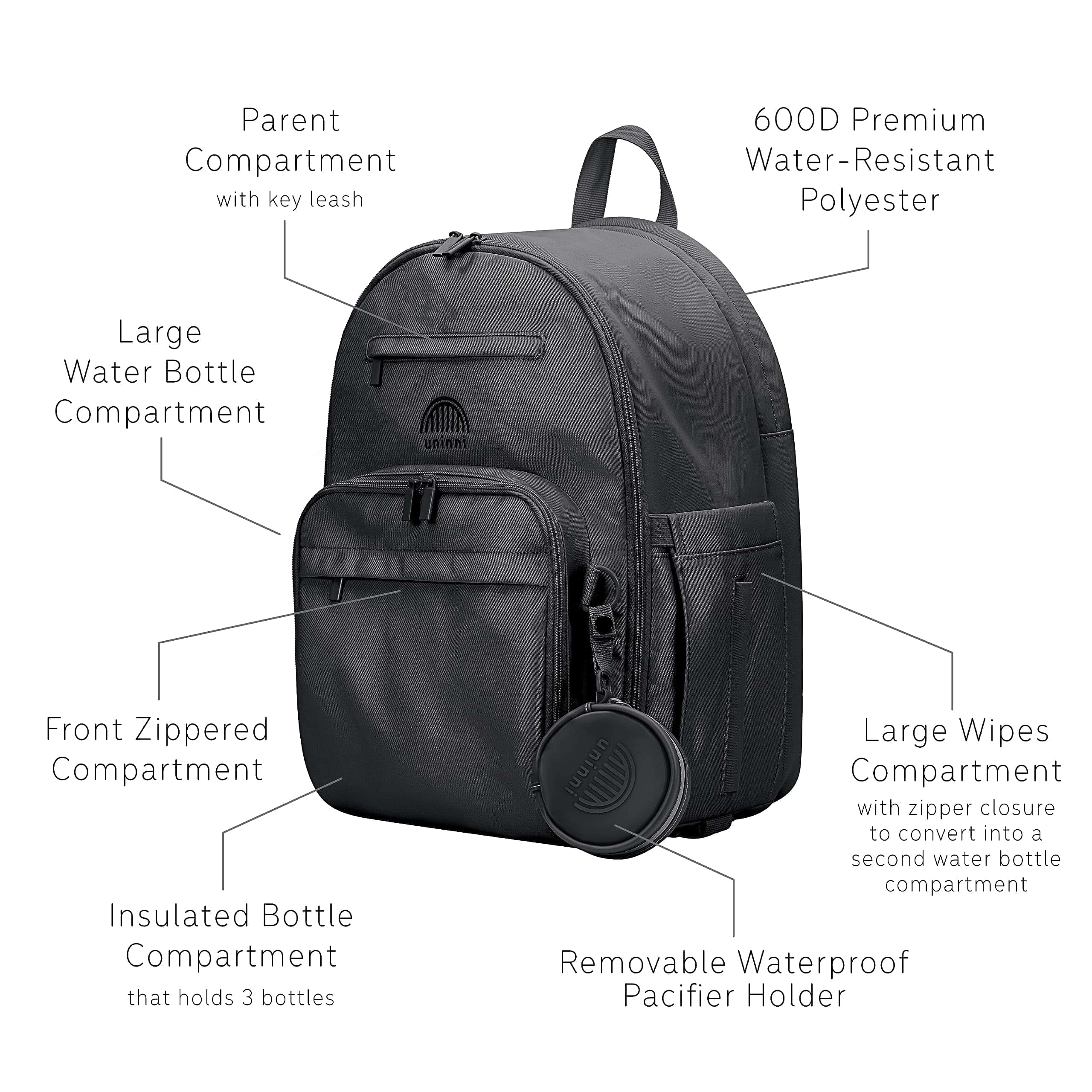 3. Bolsillos aislados para biberones y compartimento de toallitas de acceso rápido: Cuenta con tres bolsillos aislados para biberones diseñados para adaptarse a la mayor�a de los tama�os de biberones de bebé, manteniendo su temperatura durante las salidas. Un compartimento de acceso por cremallera para toallitas asegura limpiezas rápidas sobre la marcha.