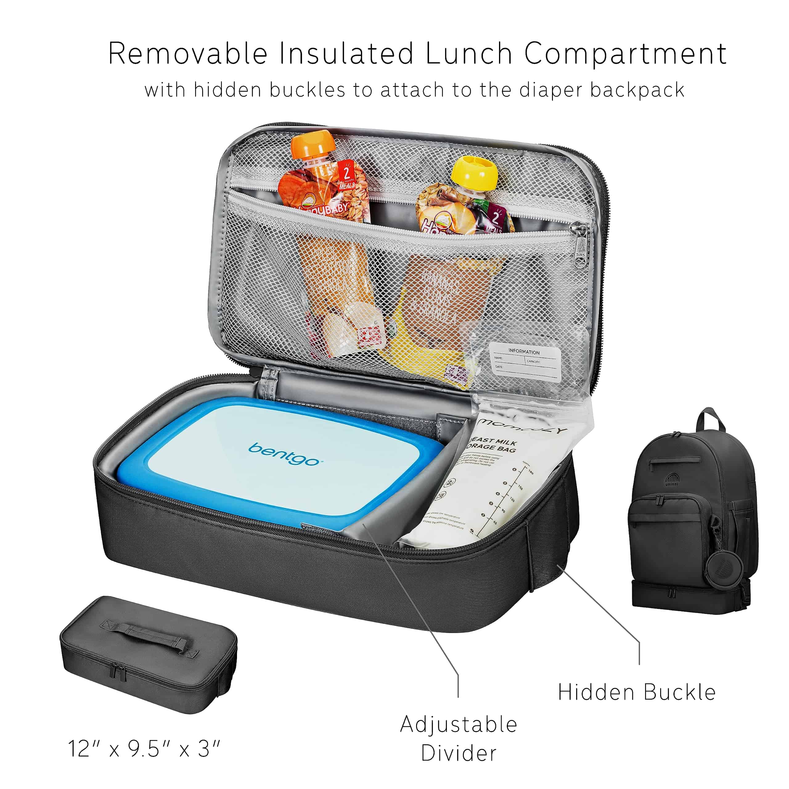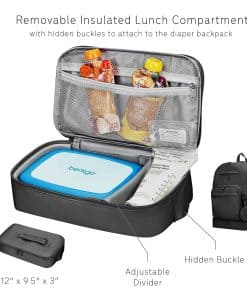 2. Estuche para chupete removible y lonchera aislada: ¡Mantén los artículos esenciales de tu bebé al alcance! Incluye un estuche para chupete impermeable removible que se engancha en el gancho externo en D y una lonchera aislada con clip para mantener los aperitivos, leche materna o biberones a la temperatura perfecta.