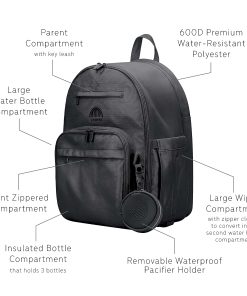 1. Dise�o espacioso y de alta calidad: Construido para durar con poliéster resistente al agua de 600D y cremalleras metálicas SBS fuertes, esta mochila para pa�ales garantiza durabilidad durante a�os. Su tama�o de 16.5 x 12 x 9.5 pulgadas se adapta a la mayor�a de los sacaleches eléctricos y manuales y laptops de hasta 15 pulgadas. Fácil de limpiar con un pa�o húmedo para mayor comodidad.