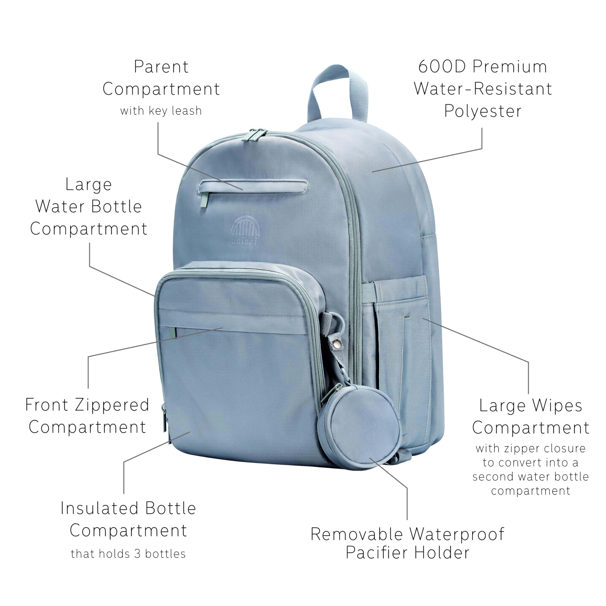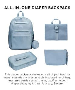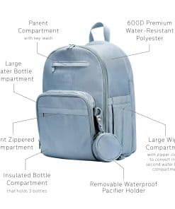 Lleva los elementos esenciales para bebé durante los próximos años con poliéster resistente al agua de 600D y fuertes cremalleras de metal SBS que se pueden limpiar fácilmente con un paño húmedo. La mochila tiene una altura de 16.5 , un ancho de 12 y una profundidad de 9.5 , que se adapta a la mayoría de los modelos de sacaleches eléctricos y manuales y laptops de hasta 15 .