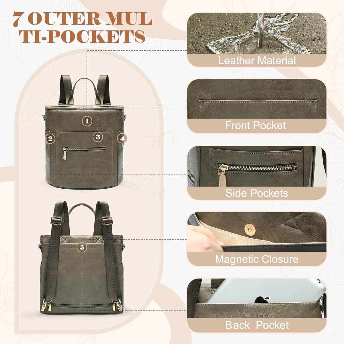 5. Material premium de cuero y fácil limpieza La mochila pañalera de cuero está hecha de cuero PU 100%, con una textura lujosa y refinada, forrada con nylon impermeable de color claro al interior, suave y cómodo, altamente resistente a las manchas duradero. Añade un toque de refinamiento a tu mochila pañalera de cuero para mujeres. La mochila tote para pañales es muy fácil de limpiar, simplemente usa un paño húmedo para limpiar cualquier derrame. Luego cuelga tu mochila de mamá para que se seque, no la pongas en la lavadora ni la secadora.