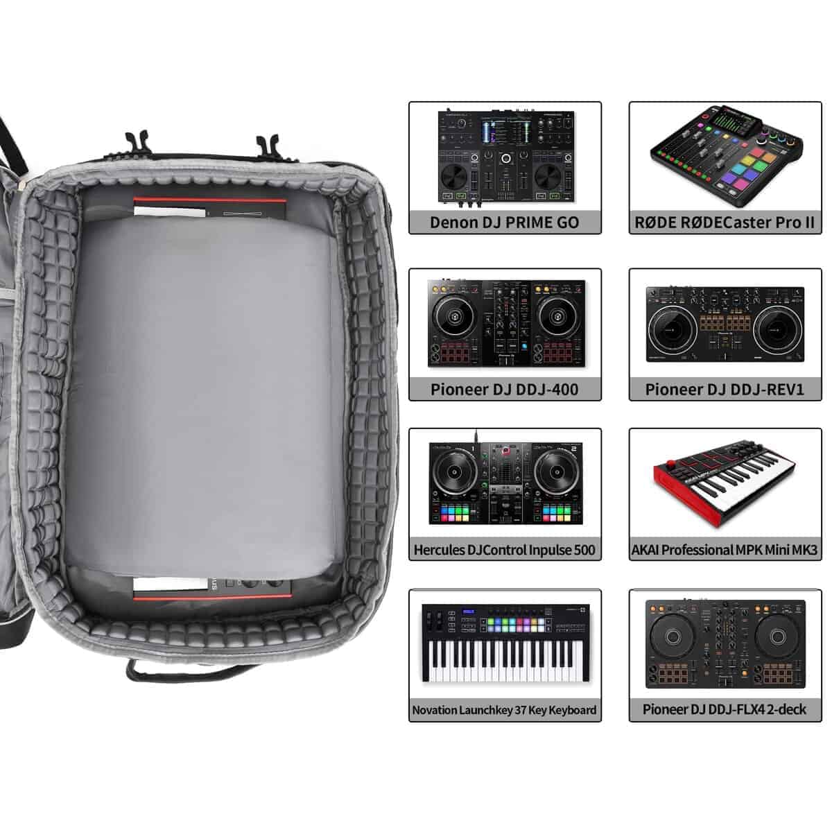 La Mochila para DJ Rabjen es el accesorio perfecto para transportar y proteger su equipo de DJ mientras viaja. Con un diseño robusto y elegante, esta mochila ofrece una serie de características que la hacen indispensable para cualquier DJ en movimiento. El compartimento principal espacioso puede acomodar la mayoría de las laptops de 17″, audífonos, cables, discos duros, fuente de alimentación, estuche para agujas, sistema de fase y artículos personales. El interior del compartimiento del mezclador está diseñado con materiales resistentes a los arañazos y suaves para proteger su equipo durante el transporte. Las correas ajustables y las hebillas en los costados y fondo de la bolsa proporcionan seguridad adicional, especialmente cuando se carga con equipos pesados. La mochila cuenta con un silbato para situaciones de emergencia y se puede llevar como mochila, maletín o acoplarse al equipaje con la ranura para equipaje. Tenga en cuenta que el borde del compartimiento grande es elástico y ajustado al almacenar controladores más grandes, como el Hercules DJControl 500. Recomendamos que las personas con una altura superior a 170 cm / 5.55′ (o constitución fuerte) compren esta mochila, ya que ofrece un gran espacio de almacenamiento. Con la Mochila para DJ Rabjen, puede estar seguro de estar comprando un producto de calidad con un excelente servicio al cliente, lo que la convierte en una excelente opción para DJs móviles y músicos de conciertos.