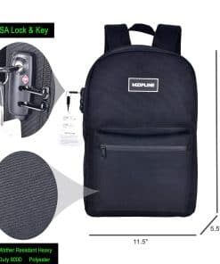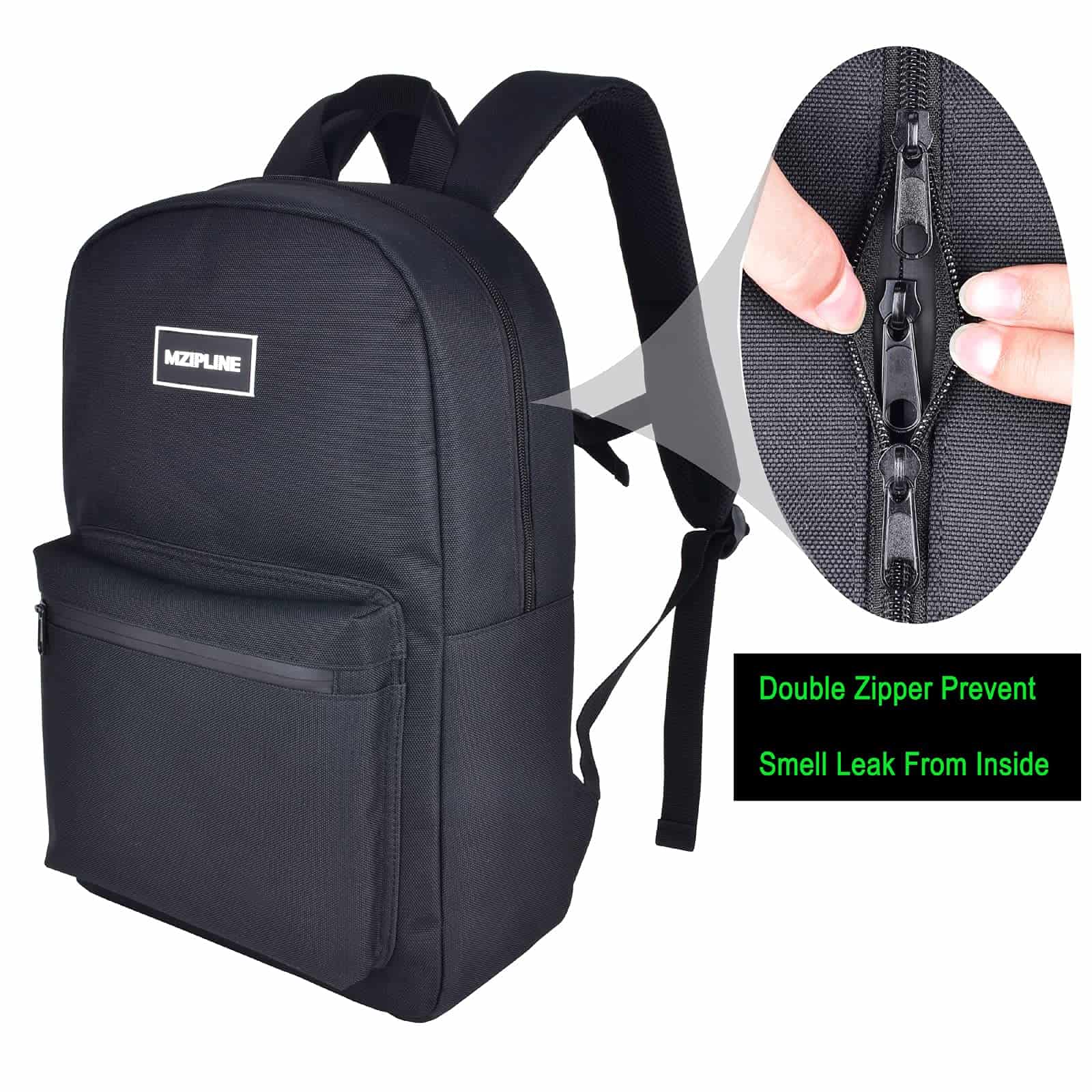 1. MZIPLINE-Mochila a Prueba de Olores con forro de fibra de carbono para absorber olores y protección completa a prueba de olores. 2. Candado integrado con llave TSA. 3. Compartimento principal con doble cremallera, dos cremalleras dentro y una exterior, doble protección. 4. Bolsillo acolchado interior, dos bolsillos acolchados dentro, uno para computadora portátil o bandeja, otro para frasco de vidrio. 5. Tejido resistente al agua. El tejido exterior es de poliéster Heather resistente al agua. 6. Bolsillo de papel de aluminio, hay un pequeño bolsillo con cierre de papel de aluminio en el interior.