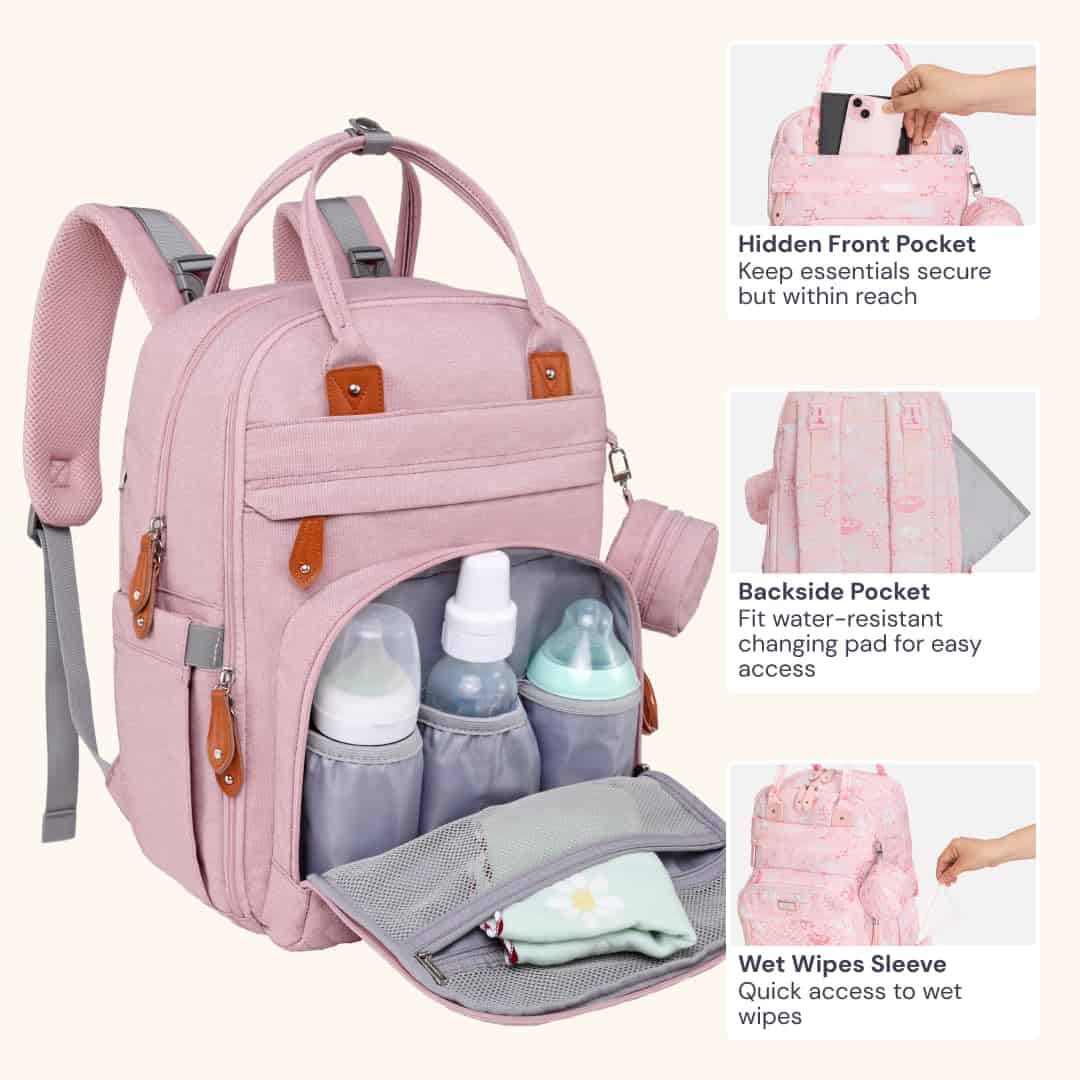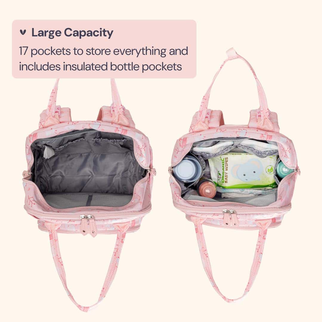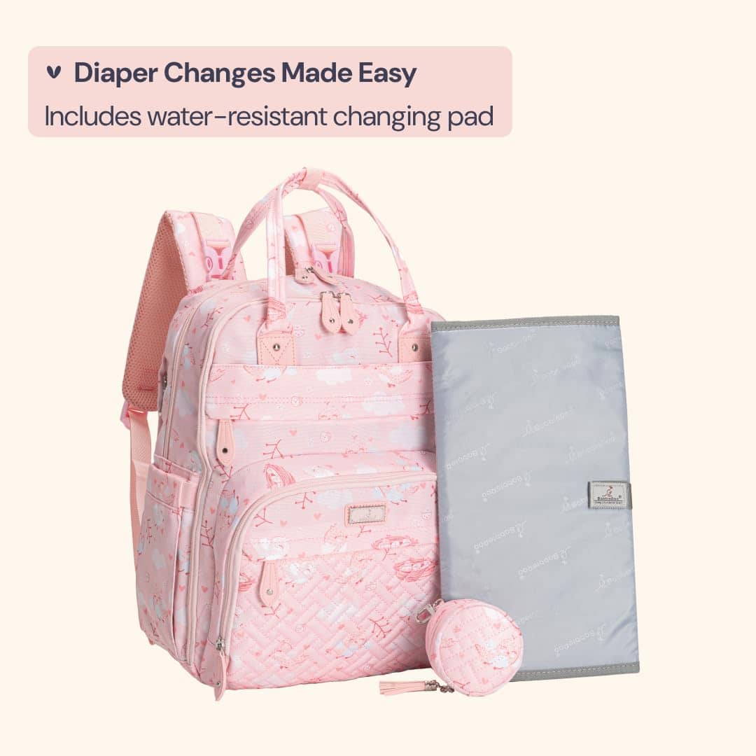 Mochila para pañales BabbleRoo – Artículos -Rosa Birdy