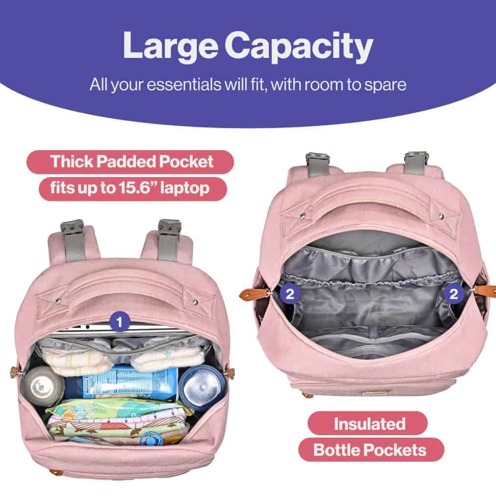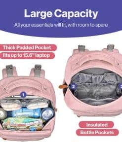 La mochila para pañales BabbleRoo tiene mucho espacio para llevar cosas de bebé, además de algo para mamá y papá. Incluye 2 compartimentos principales, 5 bolsillos aislados (¡Apto para todas las principales botellas de bebé!), un bolsillo para toallitas y un cambiador multifunción dedicado. Bolsillo para tabletas y computadoras portátiles de hasta 15.6″. Varios bolsillos con cremalleras de fácil deslizamiento hacen que esta mochila para cambiar pañales sea fácilmente accesible con una sola mano. Nuestras elegantes mochilas para pañales están hechas de tela resistente al desgarro y resistente al agua, cremalleras fuertes y forro. Las correas de hombro acolchadas reforzadas y el panel trasero acolchado distribuirán la carga de manera uniforme en tus hombros y espalda para uso prolongado. Las correas para hombros acolchadas, el asa superior de fácil agarre y los clips para cochecito convenientes te permiten usar esta mochila para pañales como una mochila de viaje esencial, un bolso de mano o para sujetar a tu coche. ¡BabbleRoo significa Servicio al Cliente! Nuestras bolsas para cambiar pañales vienen con Servicio al Cliente por Correo Electrónico las 24/7, soporte al cliente excepcional y una Garantía de 180 Días. ¡Contáctanos si tienes algún problema o necesitas ayuda!