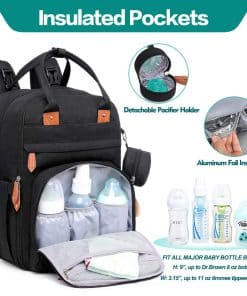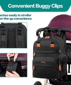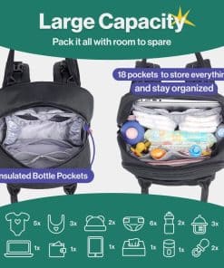 La mochila para pañales BabbleRoo tiene un montón de espacios para guardar cosas de bebé, además de algunas para mamá y papá! El bolso de bebé incluye 2 compartimentos principales, 5 bolsillos aislados (¡adaptables a todas las botellas de bebé principales!), un bolsillo para toallitas y un cambiador multifuncional dedicado! Bolsillo para tablets y laptops de hasta 15.6″. Múltiples bolsillos con cremalleras de fácil deslizamiento hacen que esta mochila para cambiar pañales sea fácilmente accesible con una mano. Las correas acolchadas para los hombros, el asa superior fácil de agarrar y los clips de cochecito convenientes te permiten utilizar esta mochila para pañales como una mochila de viaje, un bolso de mano o unir a tu cochecito. ¡BabbleRoo significa servicio al cliente! Nuestras bolsas de cambio de pañales vienen con servicio al cliente por correo electrónico las 24 horas, soporte al cliente excepcional y una garantía de 180 días! ¡Contáctanos si tienes algún problema o necesitas ayuda!