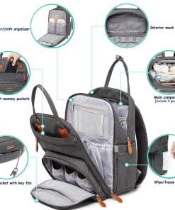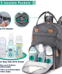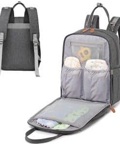 Mantente organizado en movimiento: ¡Esta mochila para bebés (tamaño: 16.1 x 11.9 x 8 pulgadas) tiene 18 bolsillos! Cuenta con 5 bolsillos aislados multifuncionales, un organizador de pañales con cremallera, varios organizadores de bolsillos de malla, 2 bolsillos delanteros profundos, un llavero y una funda acolchada para portátiles de hasta 15». Manteniendo tu mochila para pañales organizada, almacenando una gran cantidad de necesidades tuyas y de tu bebé. Detalles de diseño de rendimiento: Las cremalleras dobles son fáciles de usar con una mano, el organizador de pañales de apertura ancha y la colchoneta para cambiar plegable (23 x 14.5 pulgadas) hacen que cambiar pañales sobre la marcha sea pan comido, estés donde estés. El portachupetes desmontable te ayuda a mantener los chupetes de tu bebé limpios y fáciles de alcanzar en un viaje. Los clips de cochecito integrados están diseñados para mantener tus manos libres y listas para cualquier aventura con tu pequeño. Diseñado para durar: Elaborado con tela resistente al agua y forros fáciles de limpiar, perfecto para esos derrames y desorden diarios, presenta cremalleras de deslizamiento fácil premium y herrajes personalizados, nuestra mochila para pañales es tan elegante como versátil. ¡El diseño neutro clásico nunca pasa de moda! Mochila multifuncional: Permitiéndote llevarlo de múltiples formas: como mochila de viaje, bolso de mano o bolso de cochecito. Sus correas para los hombros ergonómicas y acolchadas te permiten llevarlo cómodamente todo el día. Un diseño inteligente para mamás y papás modernos. ¡También es un regalo ideal para un baby shower!