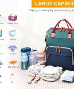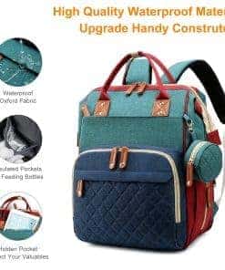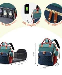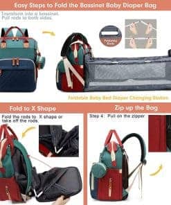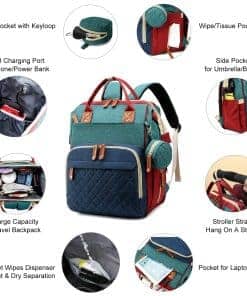 Mochila para pañales con estación de cambio, 3 en 1 impermeable con cambiador plegable, gran mochila de viaje para niña niño, rojo-verde-azul. No más preocupaciones por que el bebé toque superficies sucias al cambiar pañales. La mochila para pañales puede convertirse fácilmente en una estación de cambio, muy conveniente si estás fuera y no tienes equipo para bebés. El cambiador es suave y cómodo. Esta mochila para pañales es esencial para el bebé. Un regalo ideal para padres recién nacidos. La mochila para pañales tiene una gran capacidad (Dimensiones: 13″L x 8″W x 16.5″H), con 18 bolsillos internos y externos. Puede contener todos los elementos esenciales diarios de tu bebé recién nacido, como pañales, baberos, biberones y otros artículos de tocador. El lado izquierdo es un puerto de carga USB donde puedes usar un banco de energía y cargar tus dispositivos electrónicos. Hecho de tela Oxford 900D duradera y resistente al agua (Más fuerte que la tela de poliéster de sarga, mejor resistencia a la deformación y a la rotura). Impermeable, fácil de limpiar, el puerto de carga USB en la superficie exterior de la mochila es de tela impermeable, no tendrás miedo de mojarte en días lluviosos. Tres bolsillos conservadores de calor mantienen los biberones calientes. La bolsa de viaje para mamás también tiene un bolsillo separado e impermeable para artículos húmedos. Almohadillas ventiladas de varios paneles gruesas y suaves que te brindan máximo soporte para la espalda. Las correas de hombro anchas, transpirables y ajustables alivian el estrés de los hombros. En la parte trasera hay dos ganchos de metal para colgar la bolsa en la parte posterior de un cochecito. Todo el diseño tiene como objetivo ser tu asistente de viaje perfecto. Esta mochila para pañales se puede usar como mochila, bolso de mano o colgarse en el cochecito. Elegante y adecuada para muchas ocasiones como ir de compras, viajar, etc. Además, el diseño práctico y unisex hacen que esta mochila para pañales sea perfecta para viajar con tus niños. Los papás estarán felices de ser vistos en público con ella, mientras están de guardería! Un regalo ideal para recién nacidos y para el registro de bebés!