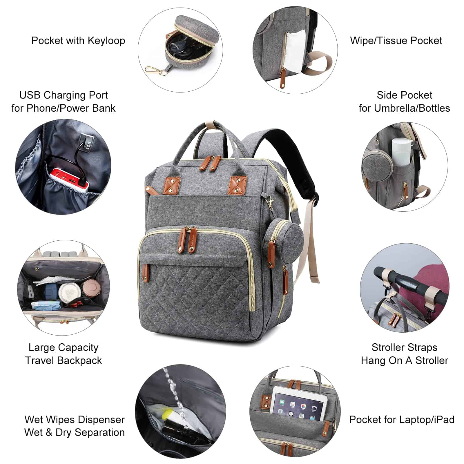 Mantener a tu bebé cómodo y feliz mientras estás fuera de casa es esencial para los padres. Esta mochila para pañales con estación de cambio incorporada es la solución perfecta. Con un diseño duradero, impermeable y térmico, junto con una gran capacidad y múltiples bolsillos, es la elección ideal para las familias en movimiento. La comodidad y versatilidad de esta mochila hacen que sea esencial para padres ocupados que desean estar preparados para cualquier situación mientras están fuera de casa. ¡Haz de la hora del cambio de pañales una experiencia fácil y sin preocupaciones con esta práctica mochila para pañales!