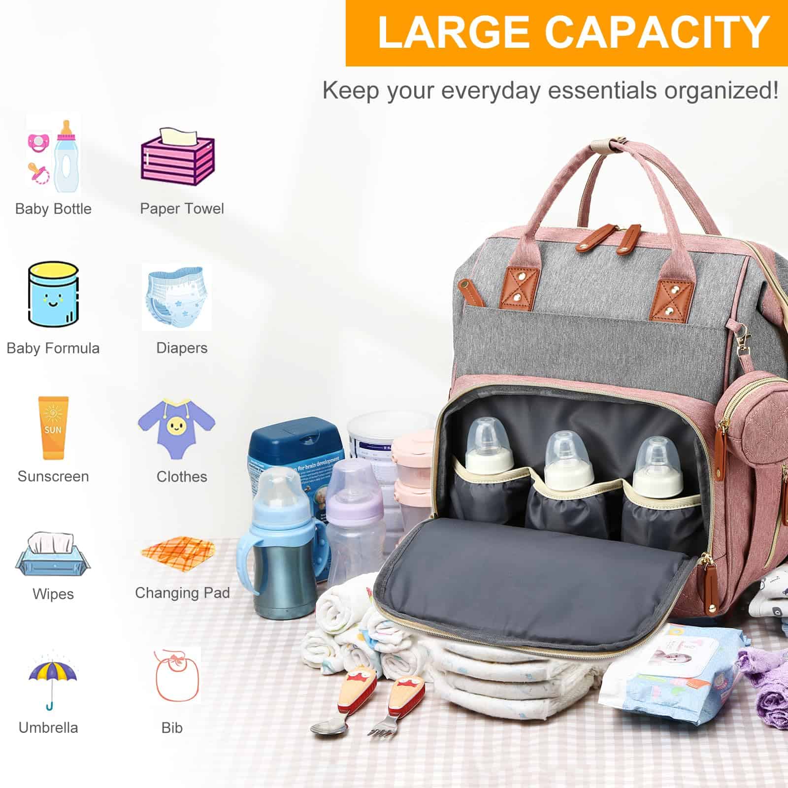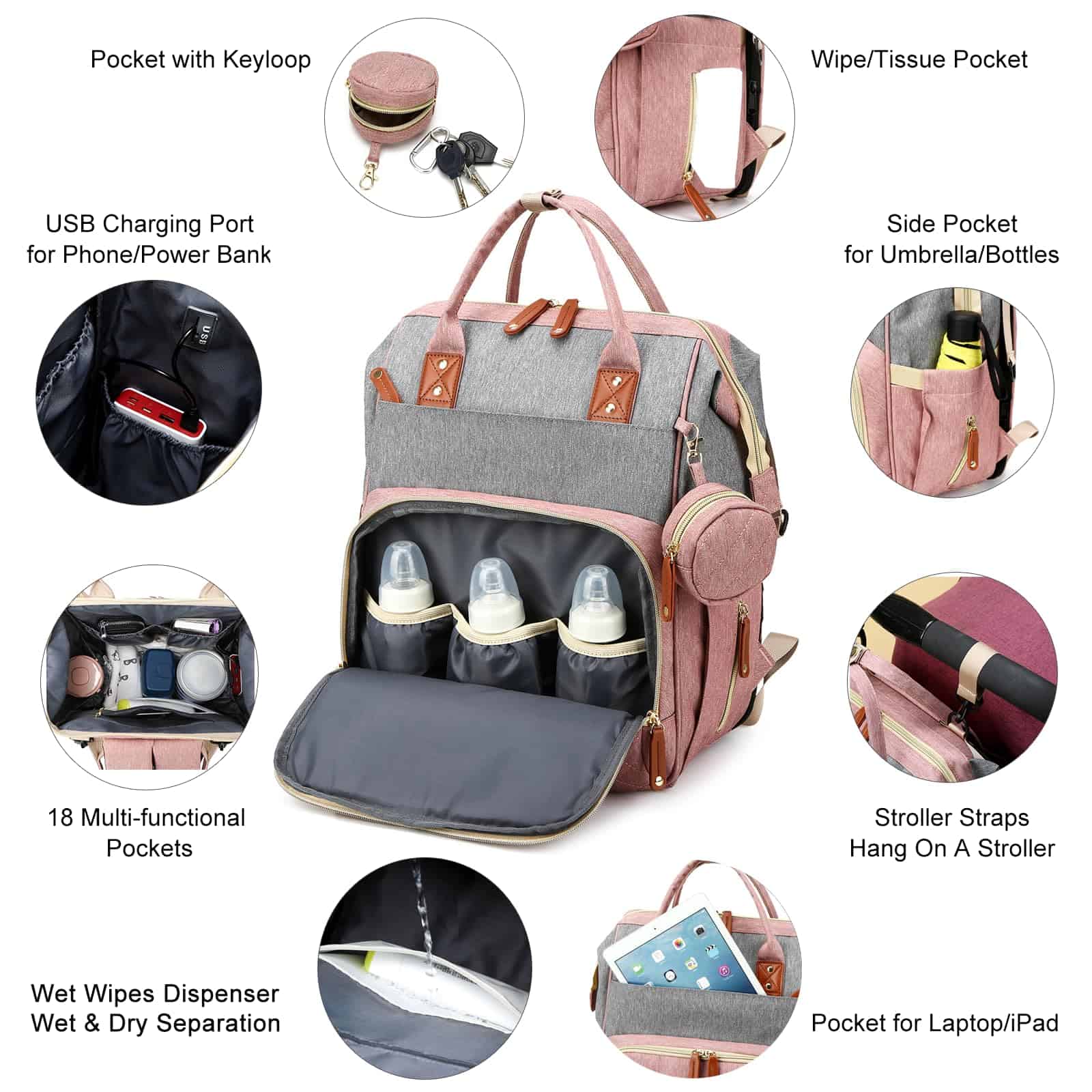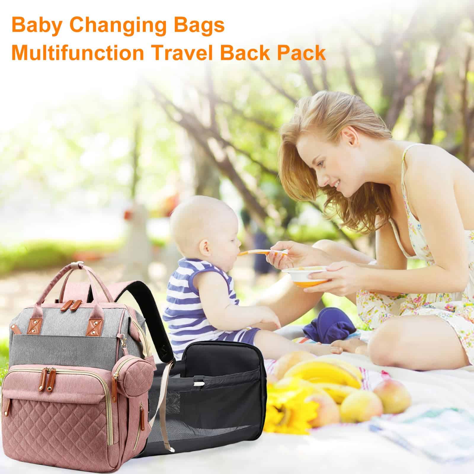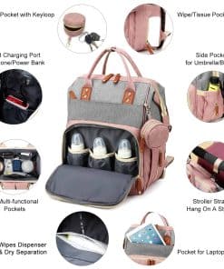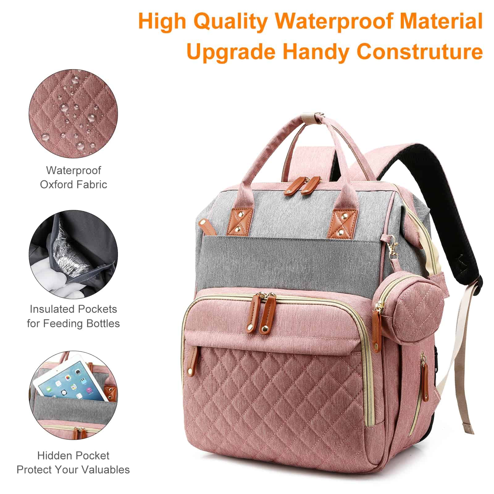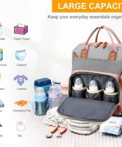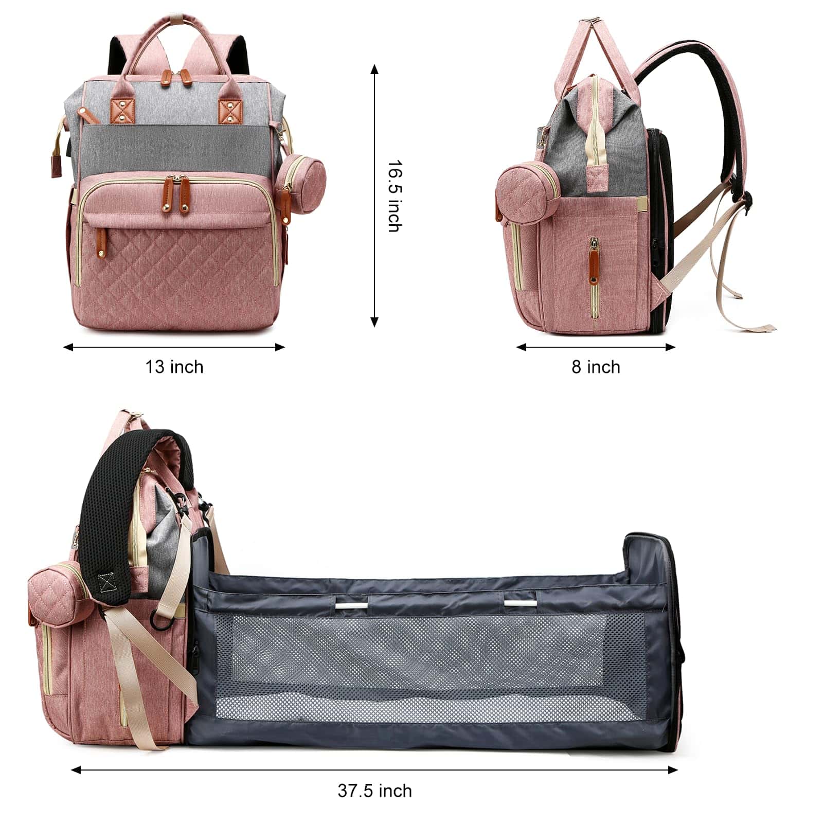 Mochila para Pañales con Estación de Cambio Impermeable 3 en 1 Mochila de Pañales para Bebés con Tapete Plegable para Cambiar Gran Mochila de Viaje para Niña Niño Rosa-Gris. ¡No más preocupaciones por que el bebé toque superficies públicas sucias al cambiar pañales! La mochila de pañales puede convertirse fácilmente en una estación de cambio, muy conveniente si estás fuera de casa y no tienes equipo para el bebé. El tapete de cambio es suave y cómodo. Esta mochila para pañales es un artículo esencial para bebés. Un regalo ideal para padres primerizos.