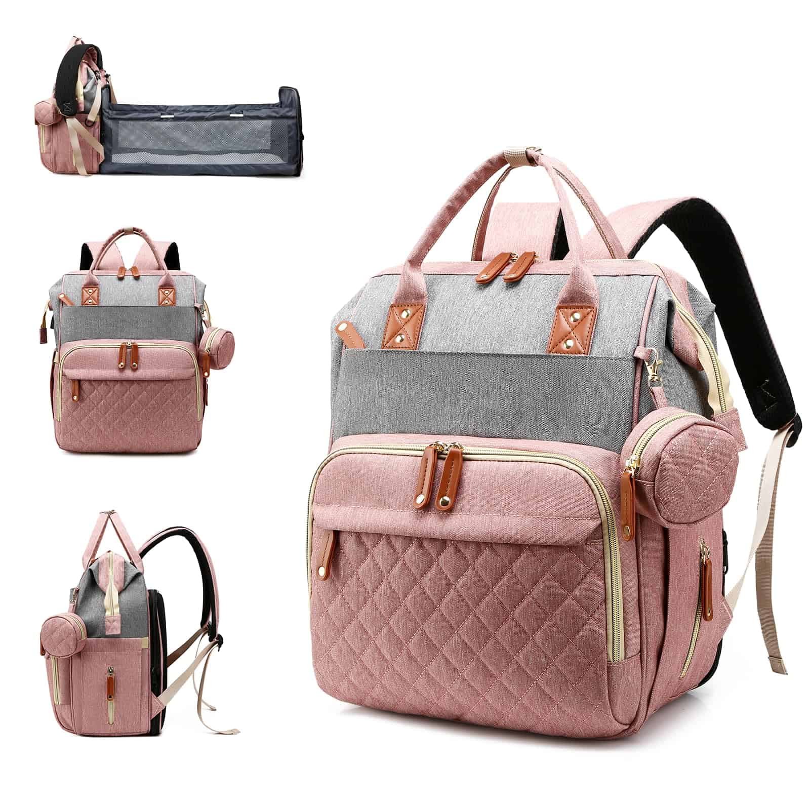 Mochila para Pañales con Estación de Cambio, -Rosa-Gris