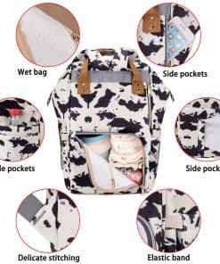 Mochila para Pañales con Estampado de Vaca para Bebés y