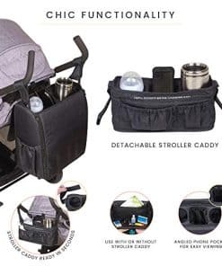 4. ACCESORIO DE CARRIOLA MULTIFUNCIONAL: El diseño versátil de mochila para pañales de Lulyboo también funciona como porta vasos cuando se acopla a una carriola, asegurando que tu bebida esté siempre al alcance. También cuenta con un cubículo desmontable, brindando un espacio seguro y conveniente para tu teléfono y otros objetos esenciales durante los paseos.