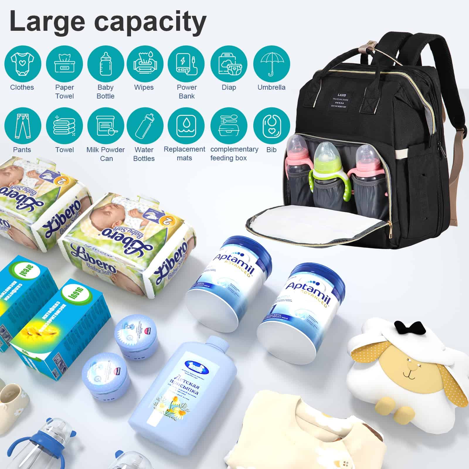 1. Mochila para pañales multifuncional con estación de cambio Esta mochila para pañales multifuncional no solo ofrece un diseño de mochila, sino que también viene con una práctica estación de cambio. Esta mochila para pañales te permite cambiar pañales fácilmente y proporciona espacio para que tu bebé juegue o descanse cuando sea necesario. Viene con una almohadilla de cambio transpirable y plegable para garantizar un espacio de reposo seguro, limpio y cómodo para tu pequeño.