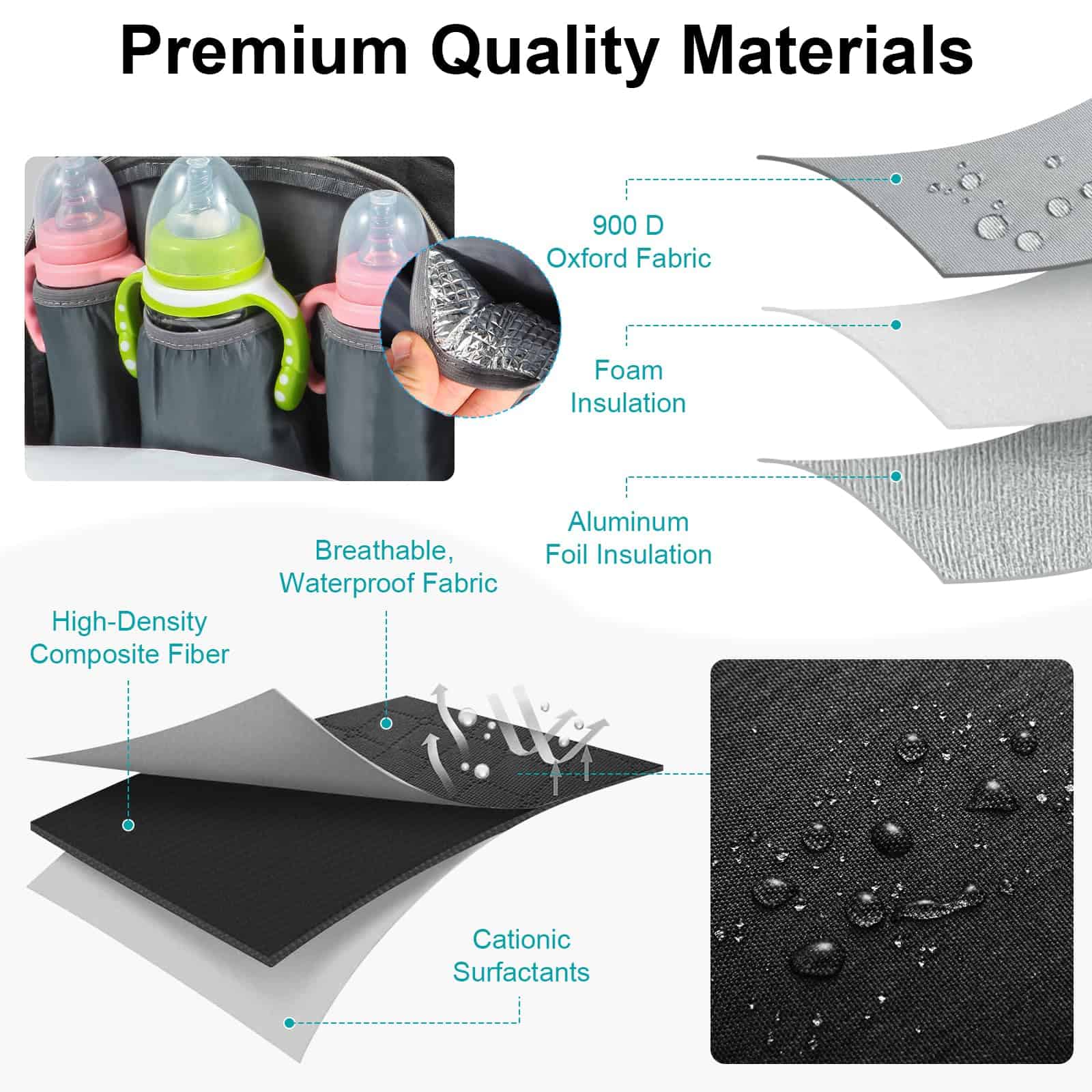 4. Diseño de múltiples bolsillos Los bolsillos laterales son perfectos para botellas de agua y toallitas. Equipados con tres bolsillos de aislamiento de papel de aluminio, los bolsillos de almacenamiento separados pueden mantener efectivamente la temperatura de la botella durante mucho tiempo. Los bolsillos impermeables para ropa mojada/seca dedicados proporcionan mucho espacio para toallas húmedas, ropa de bebé mojada y otros artículos. Para garantizar la seguridad de tus objetos de valor como carteras, dinero y llaves, también hay un bolsillo antirrobo.