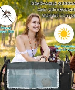 3. Bolso para pañales multifuncional El bolso viene con una variedad de accesorios prácticos y fáciles de montar. La pantalla solar protege eficazmente a tu bebé del sol y repele los insectos, proporcionando una protección completa para tu pequeño. El puerto de carga USB está ubicado en el compartimento principal, lo que te permite conectar convenientemente una fuente de alimentación móvil para cargar sobre la marcha. El arco de juguete desmontable está adornado con juguetes colgantes para mantener entretenido y contento a tu bebé mientras estás fuera de casa.